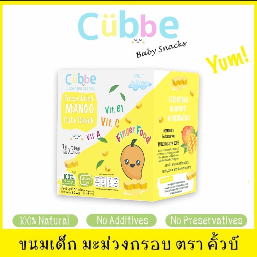 Cubbe คิ้วบ์ ขนมเด็ก ฟรีซดราย ผลไม้อบแห้ง สตรอว์เบอร์รี่ มะม่วง บร็อคโคลีผสมมันหวาน อโวคาโด้กล้วย สำหรับเด็ก 8M+