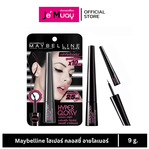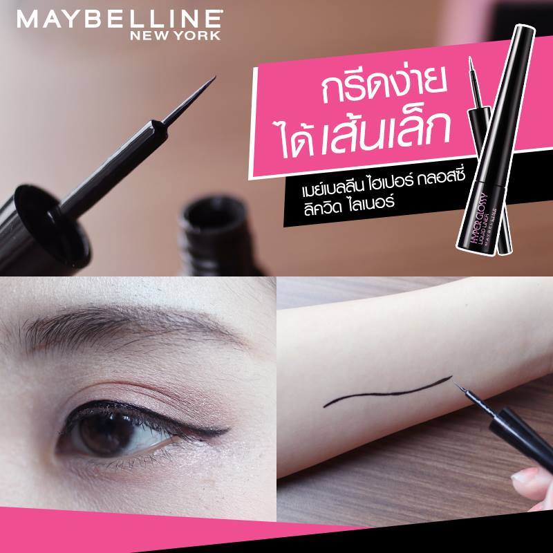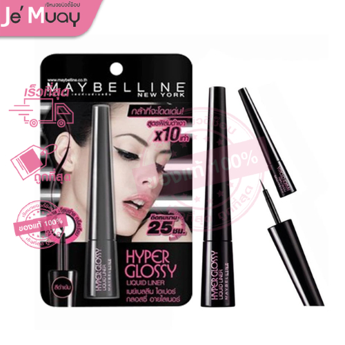 [อายไลเนอร์] Maybelline Hyper Glossy Liquid Liner เมย์เบลลีน ไฮเปอร์ กลอสซี่ อายไลเนอร์ #สีดำกันน้ำ ล้างออกง่าย [ของแท้]