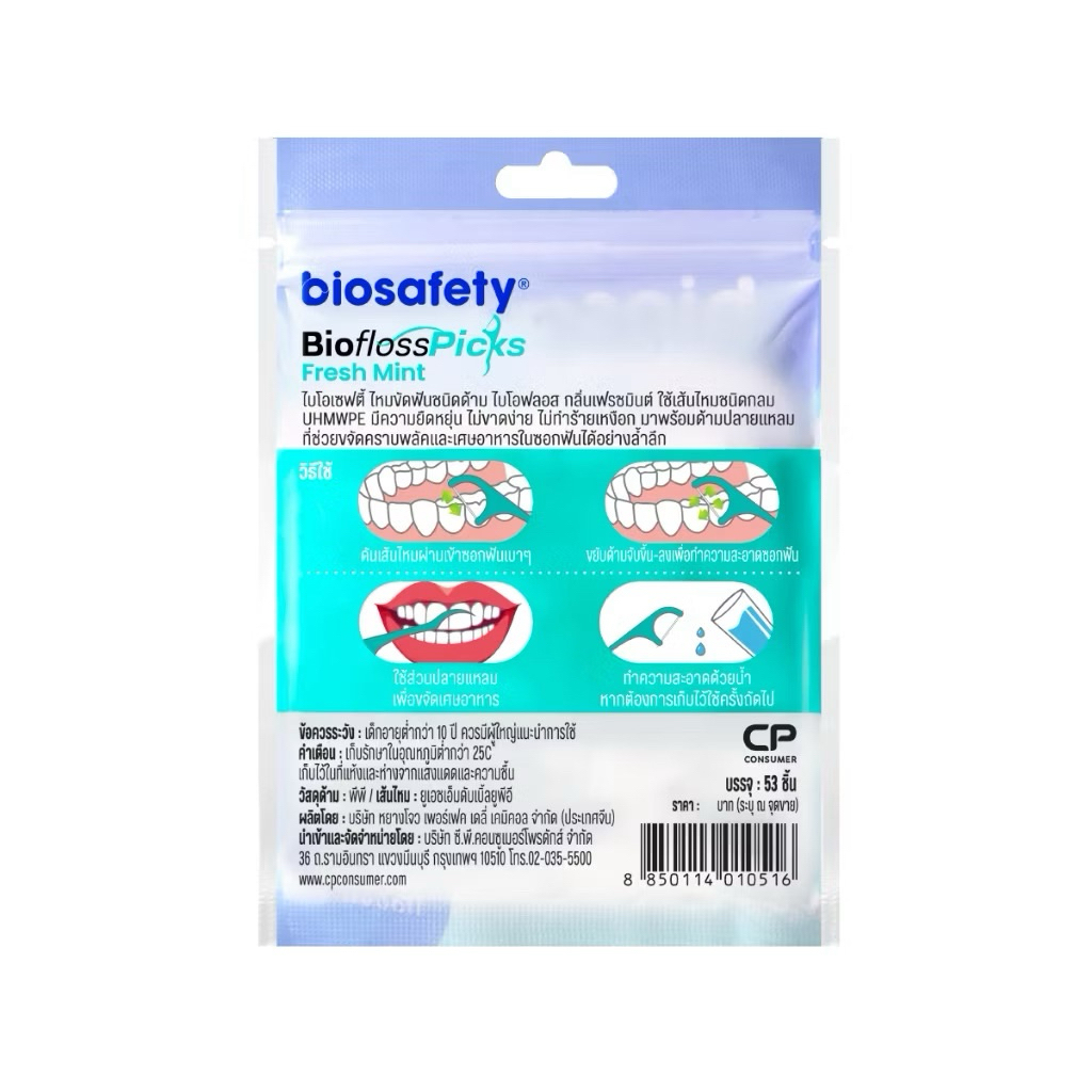 ส่งฟรี/มีไลฟ์ Biosafety ไหมขัดฟัน ชนิดด้าม กลิ่นเฟรชมินต์ แบบซอง พร้อมกล่องพกพา 53 ชิ้น