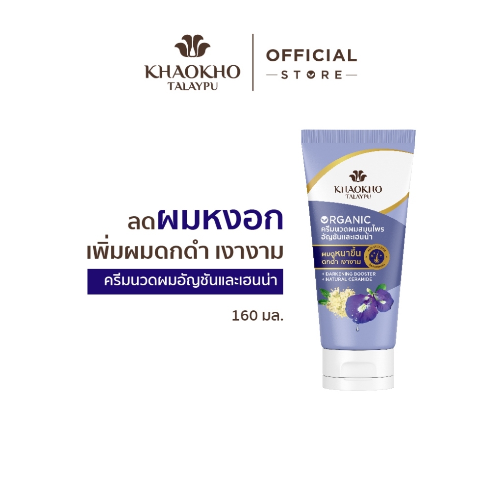 Khaokho Talaypu เขาค้อทะเลภู ครีมนวดผม สูตรอัญชันและเฮนน่า ช่วยลดผมหงอก (160 มล.)