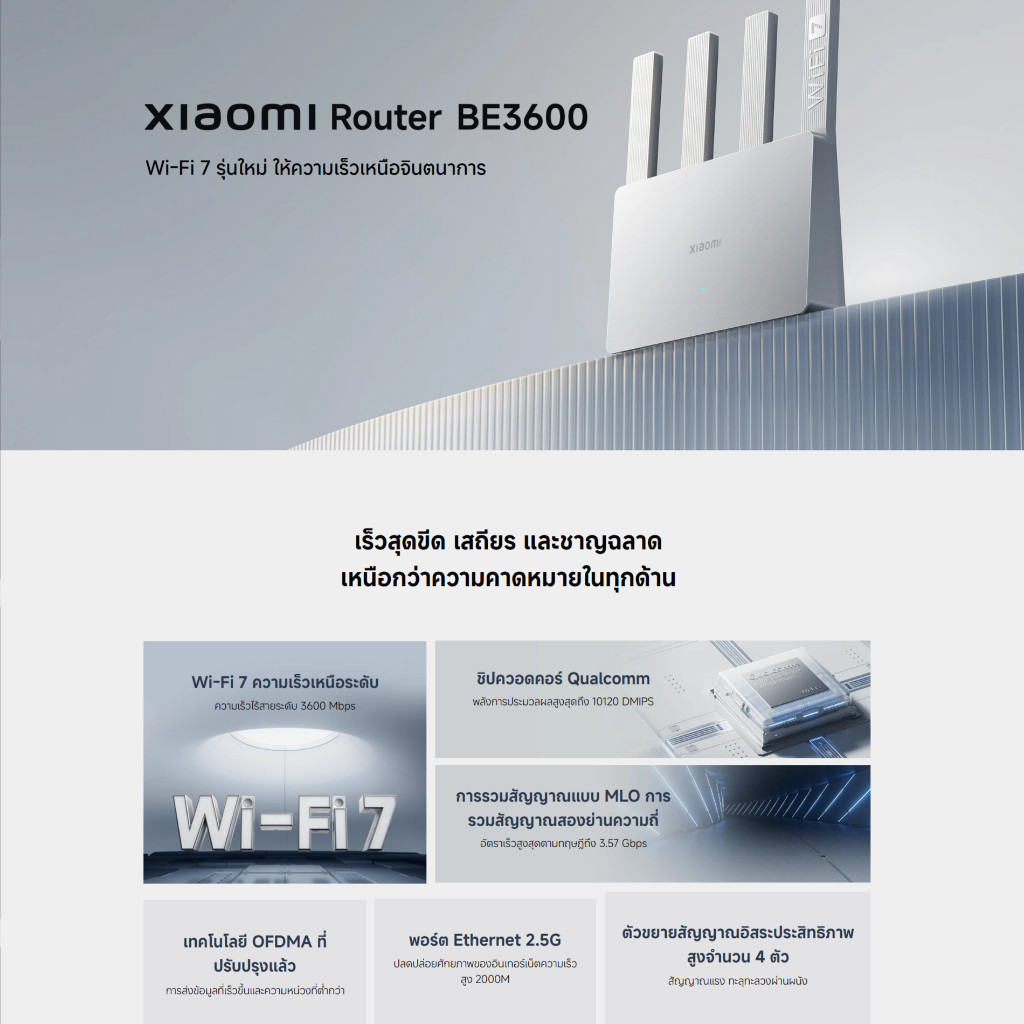 Xiaomi Router BE3600 เราเตอร์ Wi-Fi 7 ความเร็วเหนือระดับ ความเร็วไร้สายระดับ 3600 Mbps ชิปควอดคอร์