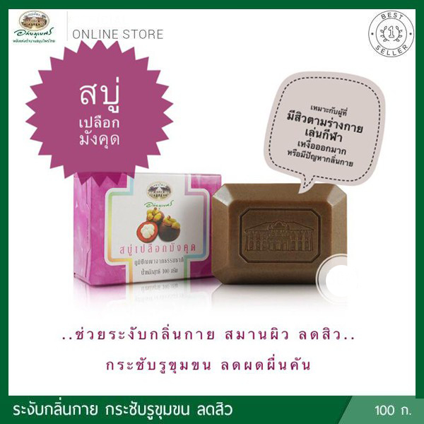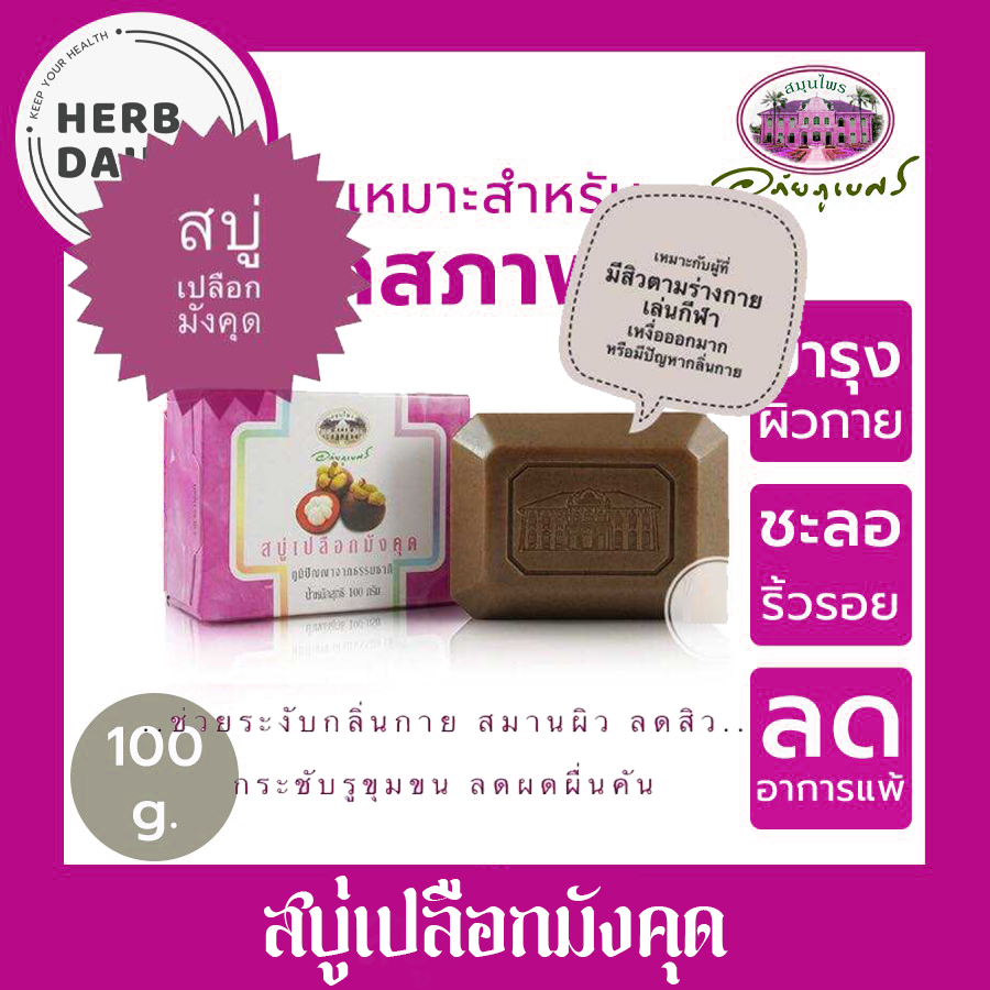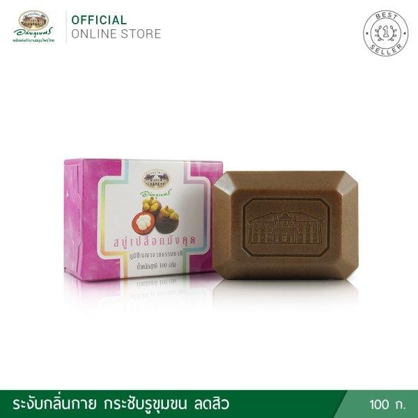 สบู่เปลือกมังคุด 🌸🌸อภัยภูเบศร ✅(ผลิตใหม่ล่าสุด)✅ขนาด 100 กรัม