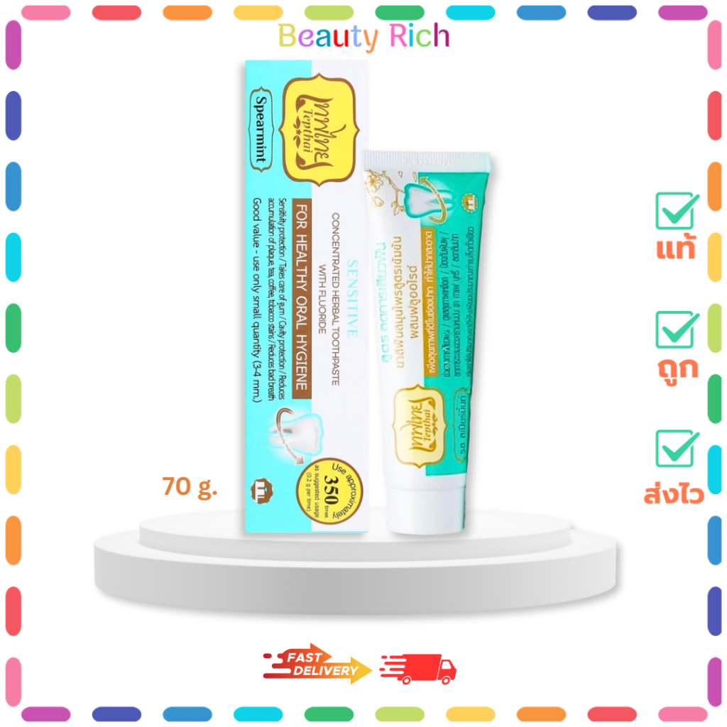 (1 หลอด) Tepthai ยาสีฟันเทพไทย สูตรสเปียร์มิ้นท์ (สีเขียวขาว) (70 g.)