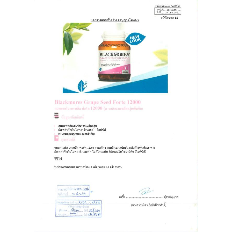 Blackmores Grape Seed Forte 12000mg. 30's แบลคมอร์ส เกรพ ซีด ฟอร์ท 12000มก. 30 เม็ด