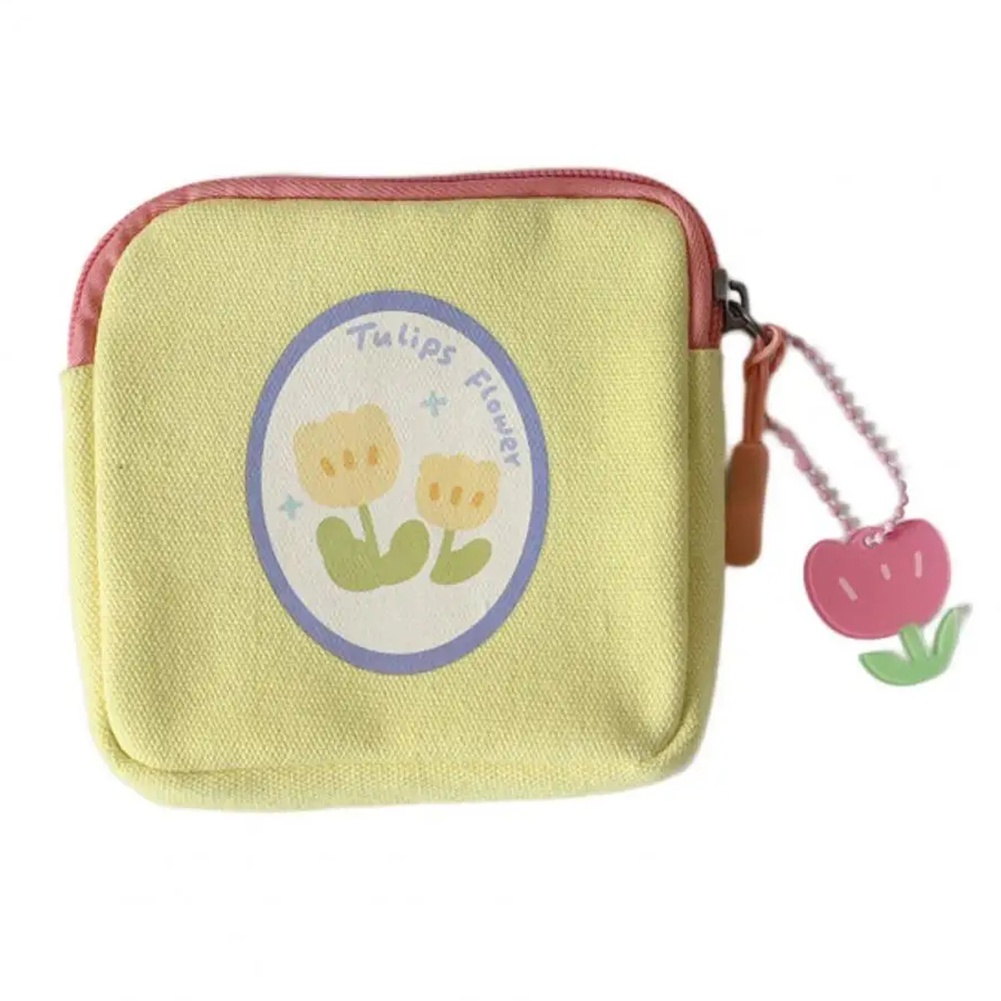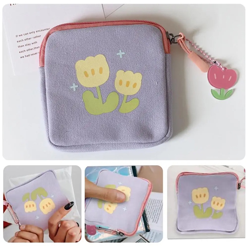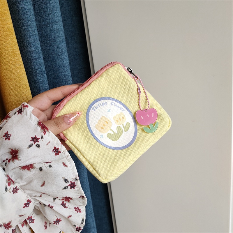 กระเป๋าใส่เหรียญ ผ้าอนามัย ลิปสติก มีซิป ลายดอกไม้น่ารัก สไตล์เกาหลี สําหรับนักเรียน ผู้หญิง YUE