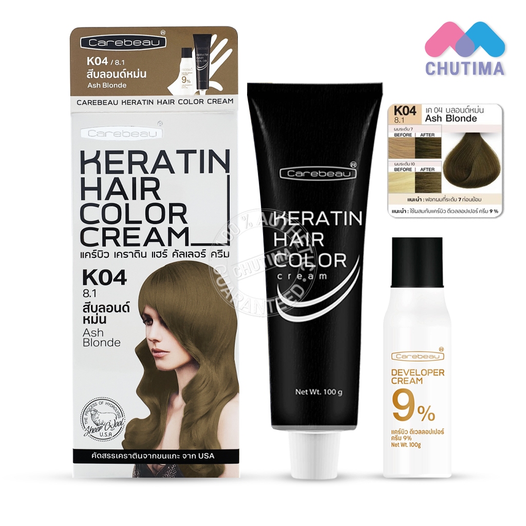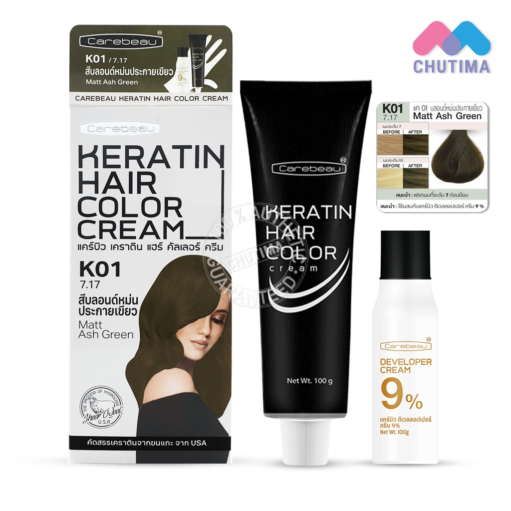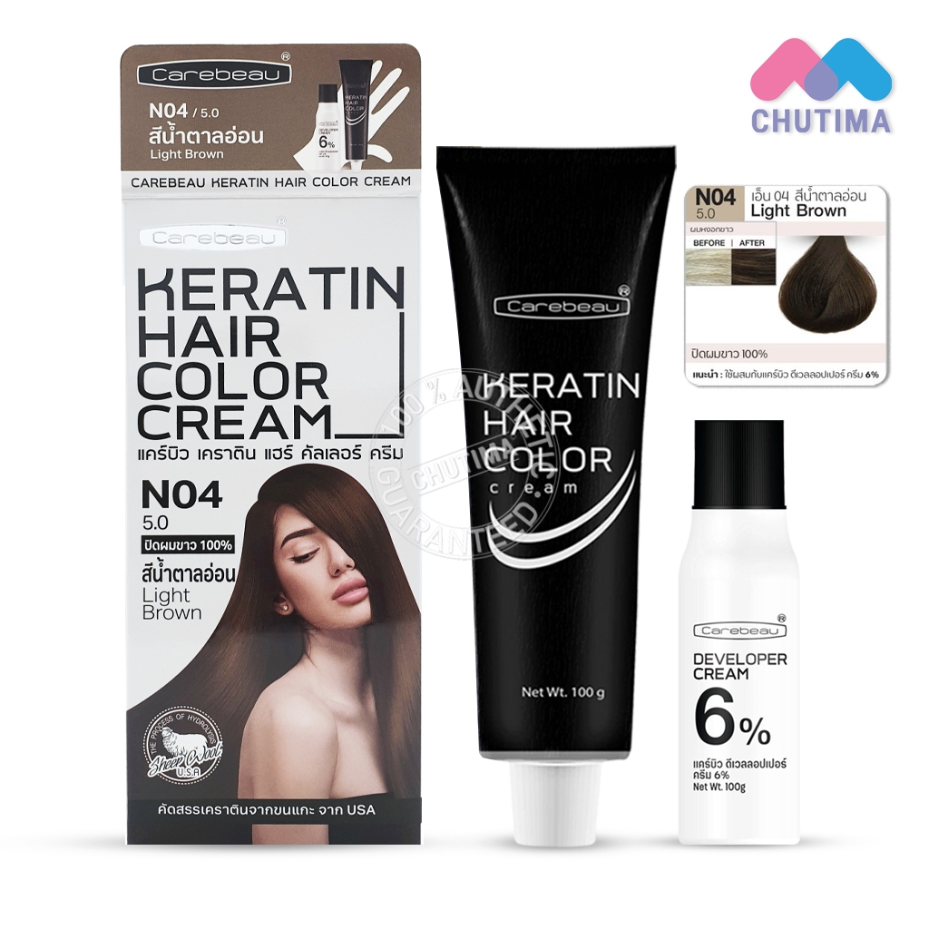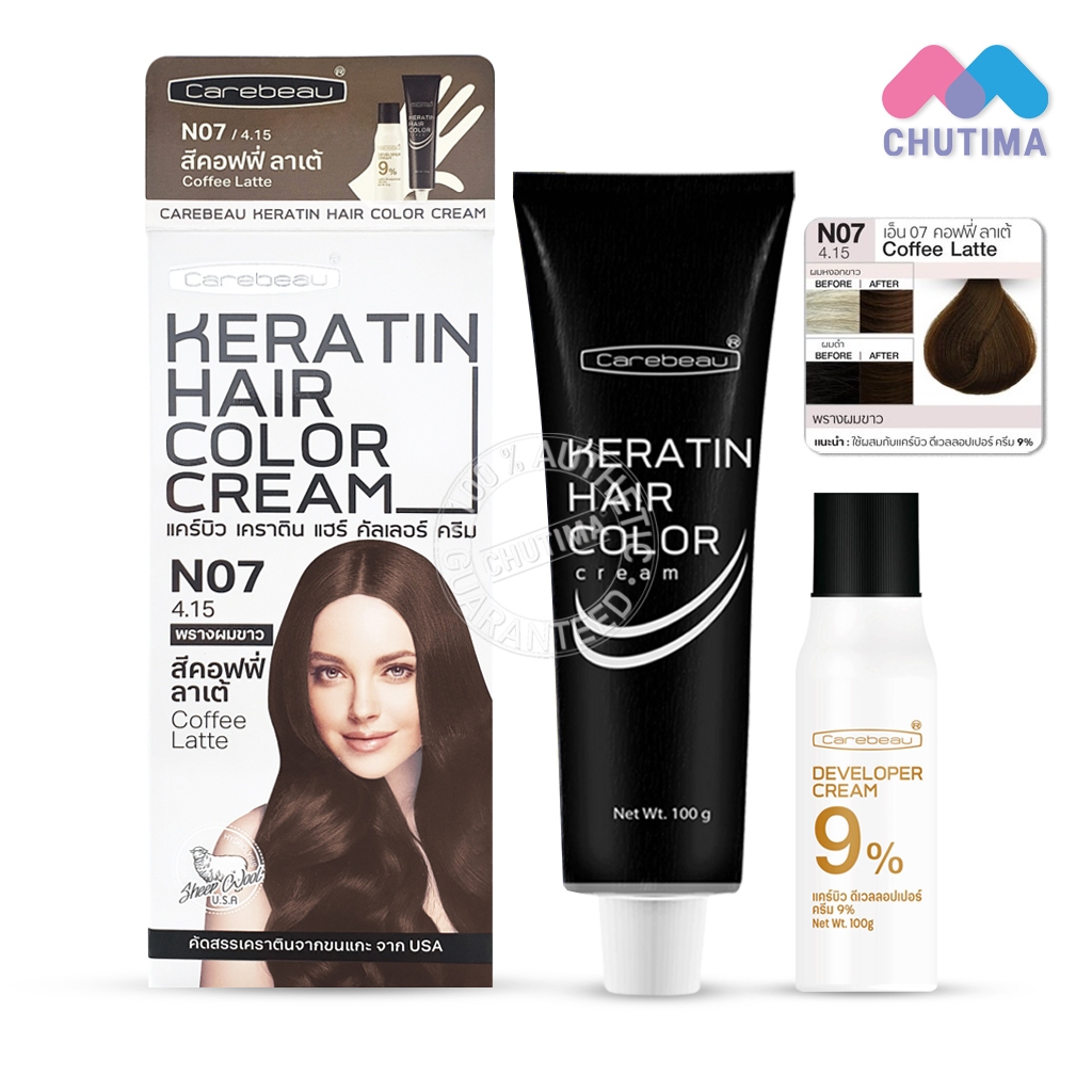 สีย้อมผม แคร์บิว เคราติน แฮร์ คัลเลอร์ ครีม Carebeau Keratin Hair Color Cream 100g.
