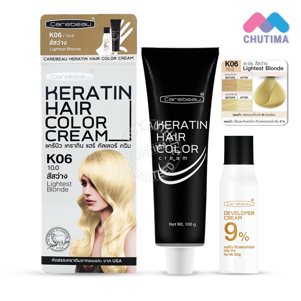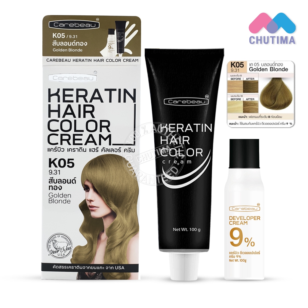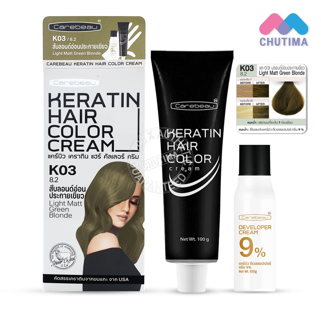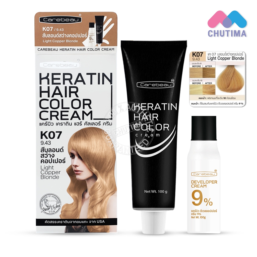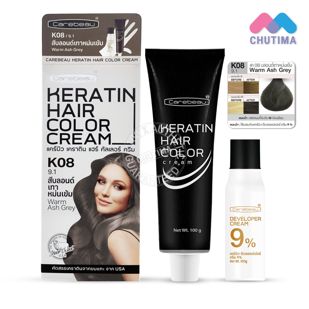 สีย้อมผม แคร์บิว เคราติน แฮร์ คัลเลอร์ ครีม Carebeau Keratin Hair Color Cream 100g.