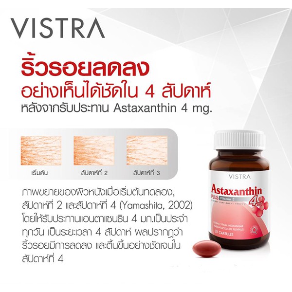 Exp.09/28 Vistra astaxanthin 4mg 30 เม็ด วิสทร้า แอสตราแซนติน