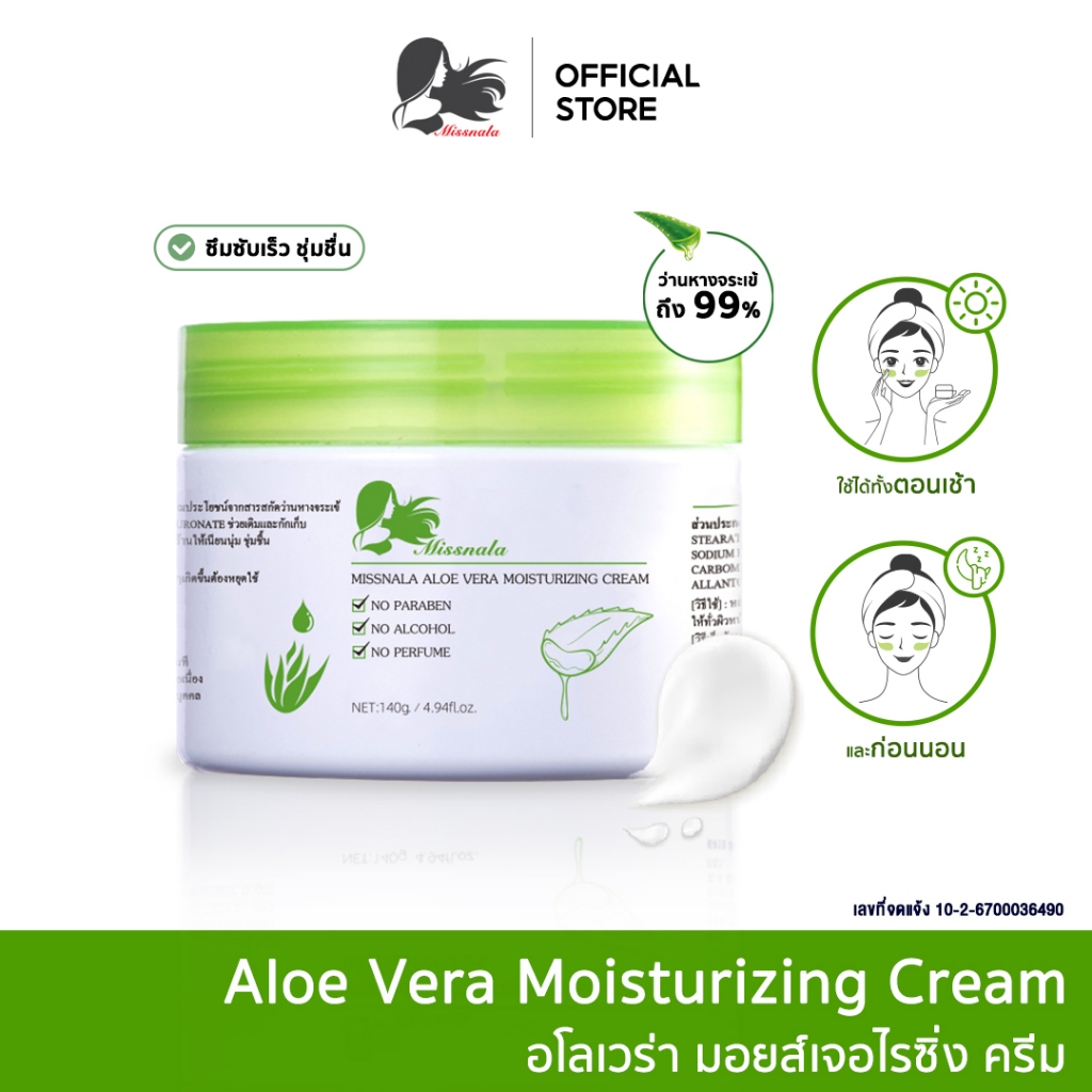 Missnala ALOE MOISTURIZING CREAM มิสนาลา อโล มอยเจอร์ไรซิ่ง ครีมบำรุงหน้า สารสกัดจากว่านหางจระเข้