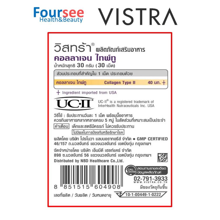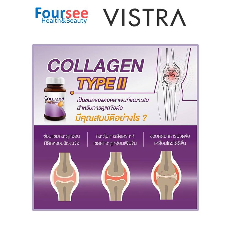 Vistra BON-ACTIV UC-II 40mg วิสทร้า คอลลาเจน ไทป์ทู บำรุงกระดูกอ่อนตรงข้อ