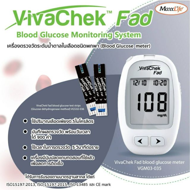 VivaChek Fad Blood Glucose Meter วิวาเช็ค เครื่องตรวจวัดระดับน้ำตาลในเลือด 87881