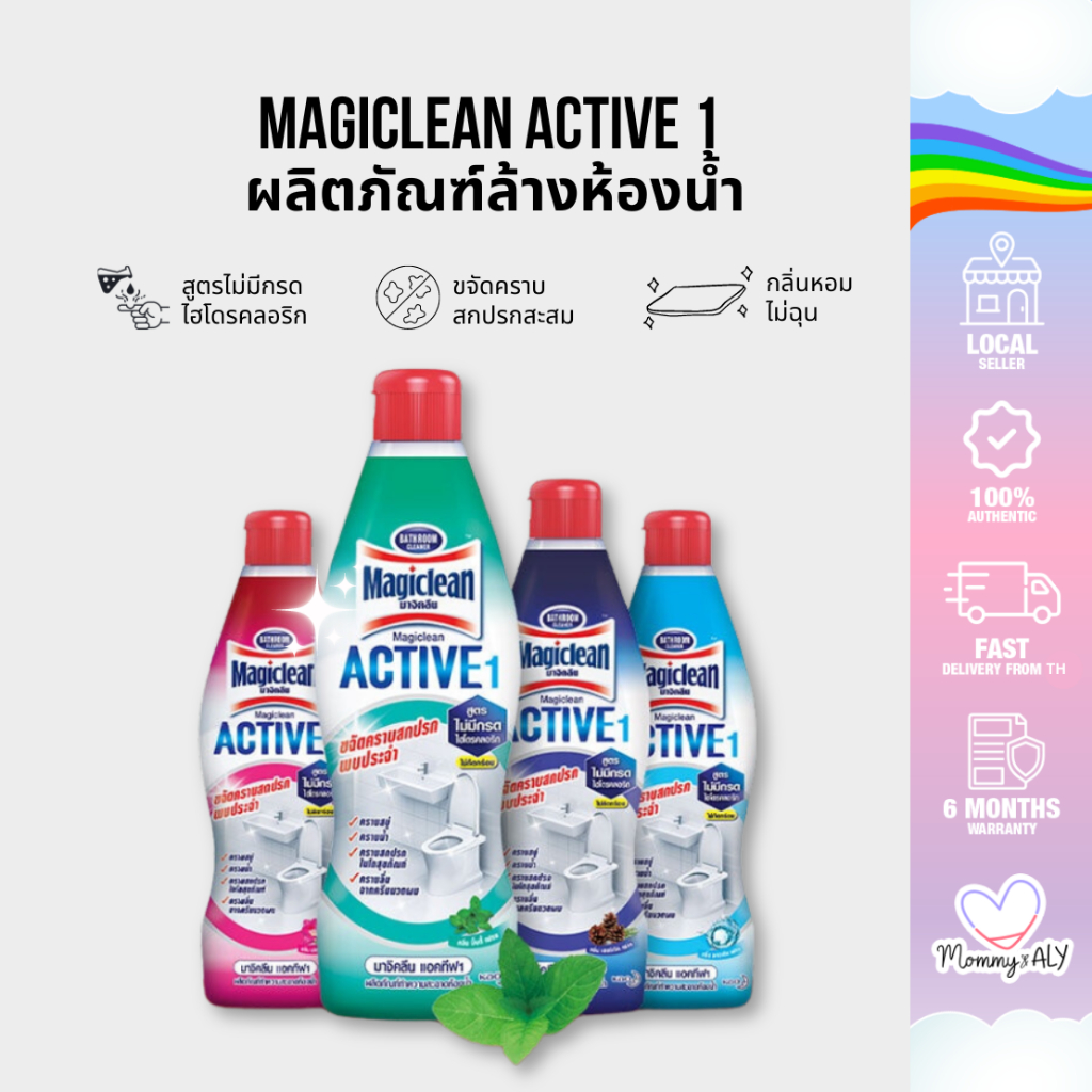 Magiclean Active 1 มาจิคลีน แอคทีฟ น้ำยาล้างห้องน้ำ สูตรไม่มีกรด ถุงเติม 600ml ขวด 700ml