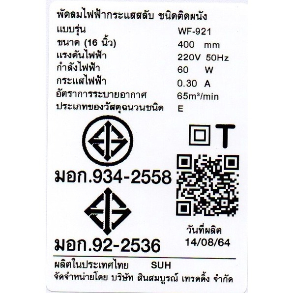 Victor พัดลม ติดผนัง 16 นิ้ว รุ่น WF-921 สีขาว ประหยัดไฟเบอร์ 5 ปรับส่าย,แรงลมด้วยเชือก 2 เส้น พัดลมวิคเตอร์