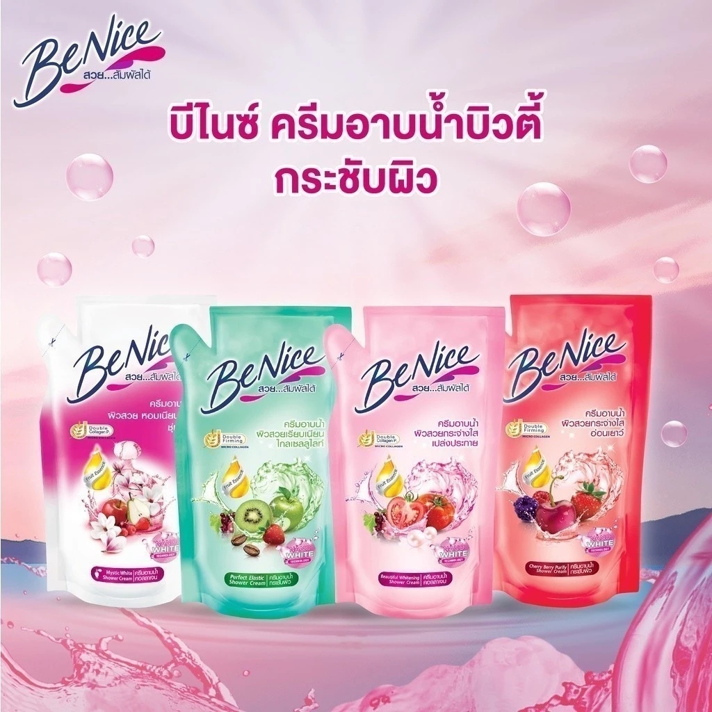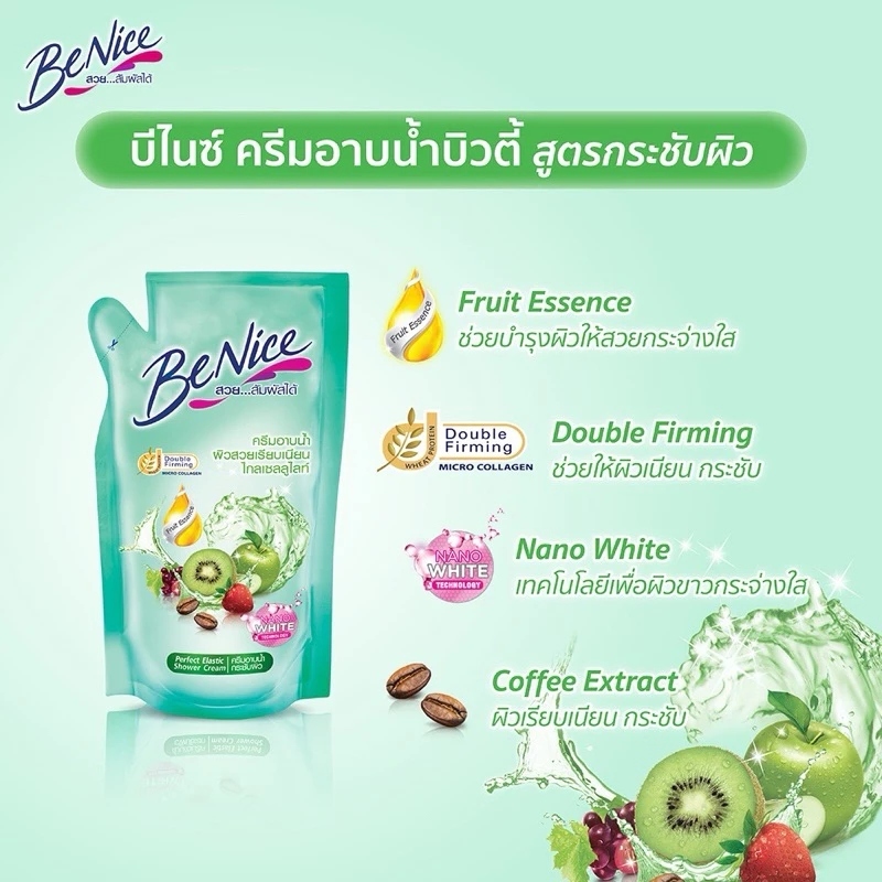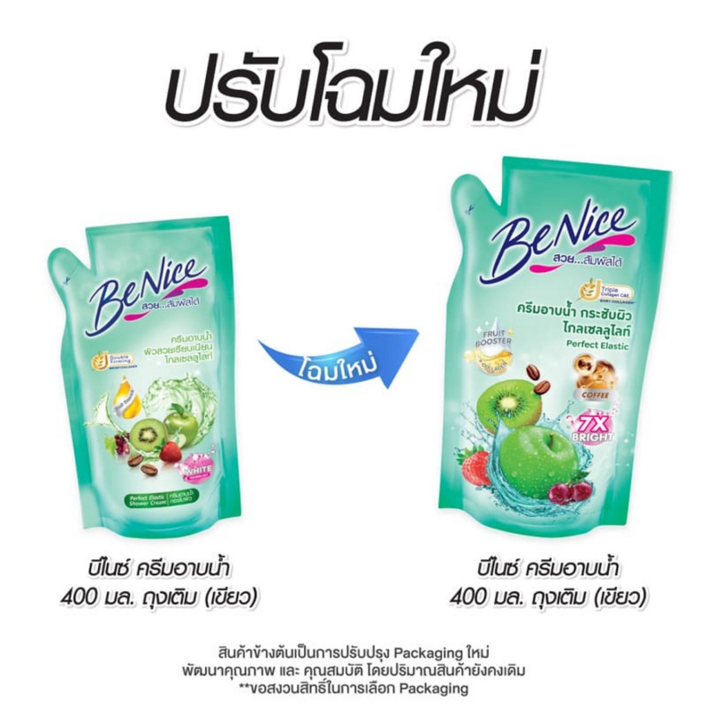 (1 ถุง) แพ็คเกจใหม่ Benice Perfect Elastic (สีเขียว) บีไนซ์ เพอเฟค อีลาสติค ครีมอาบน้ำ (400 ml.)