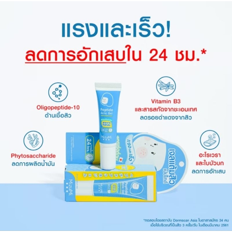 ส่งฟรี/มีไลฟ์ MizuMi Peptide Acne Gel (9g x 1 หลอด) เจลแต้มสิว สิวอักเสบ สิวไม่มีหัว แดงบวม ผิวเป็นสิว