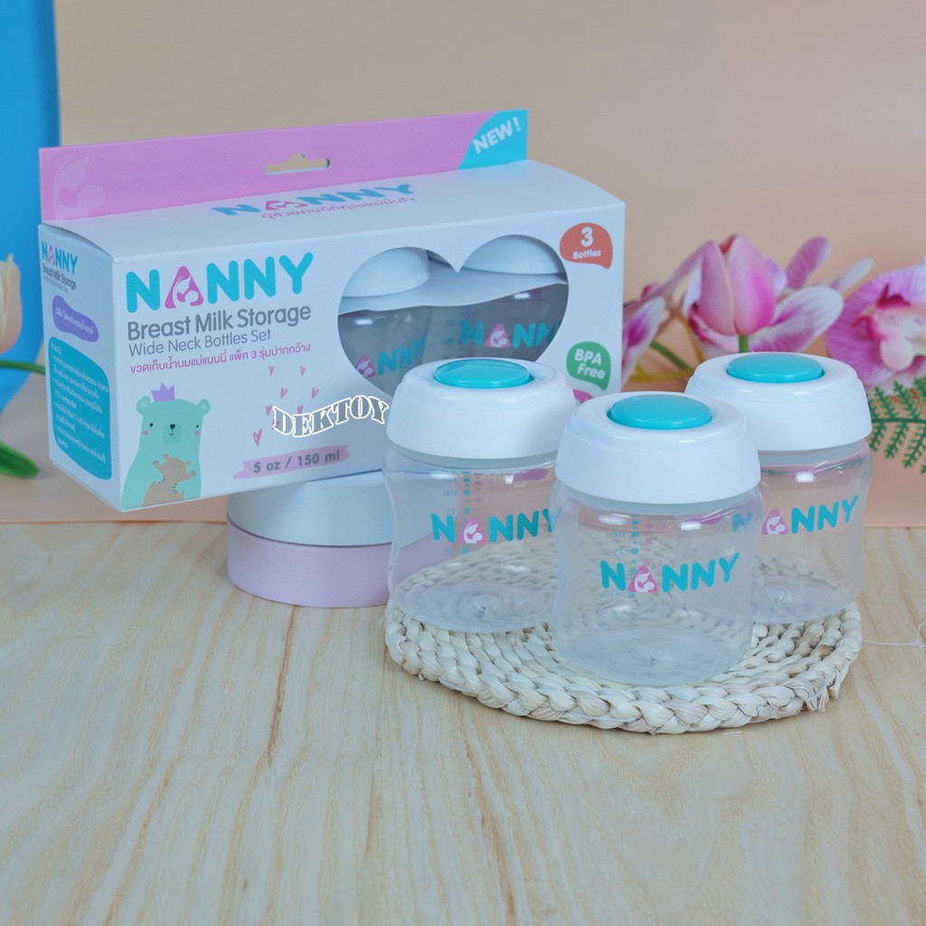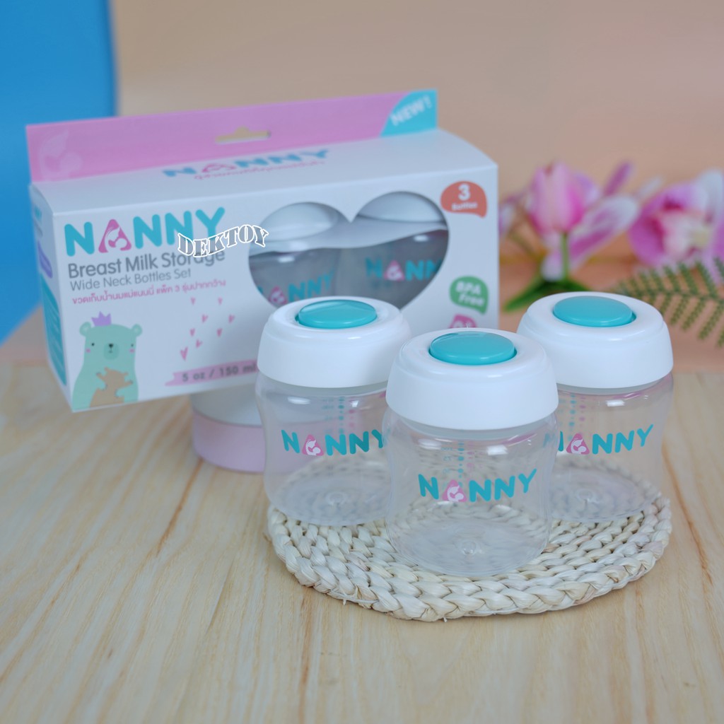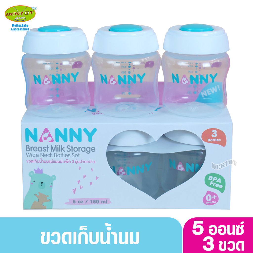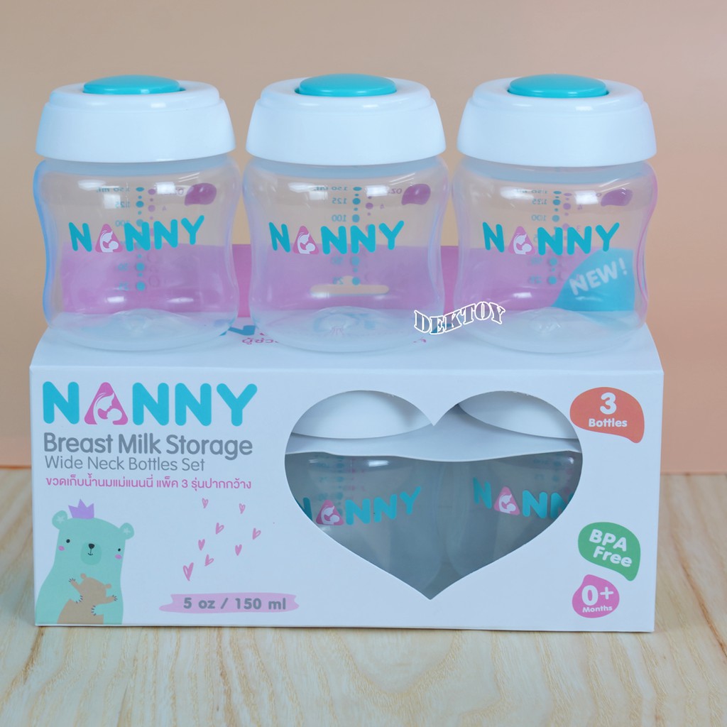 Nanny ขวดเก็บน้ำนมแม่ ขนาด 5 ออนซ์ รุ่นปากกว้าง 3 ขวด (ใช้กับจุกนมได้) N2211