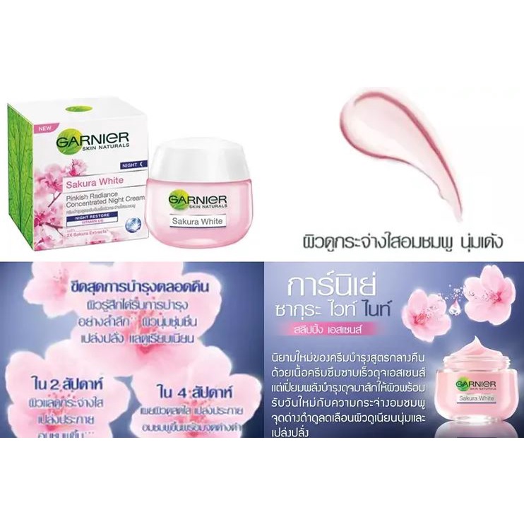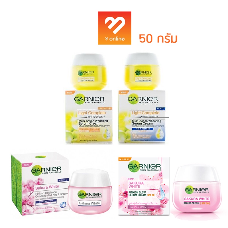 (กระปุก) GARNIER light complete Sakura White Cream Day / Night การ์นิเย่ ไลท์ คอมพลีท ซากุระไวท์ เดย์ครีม ไนท์ครีม 50 มล