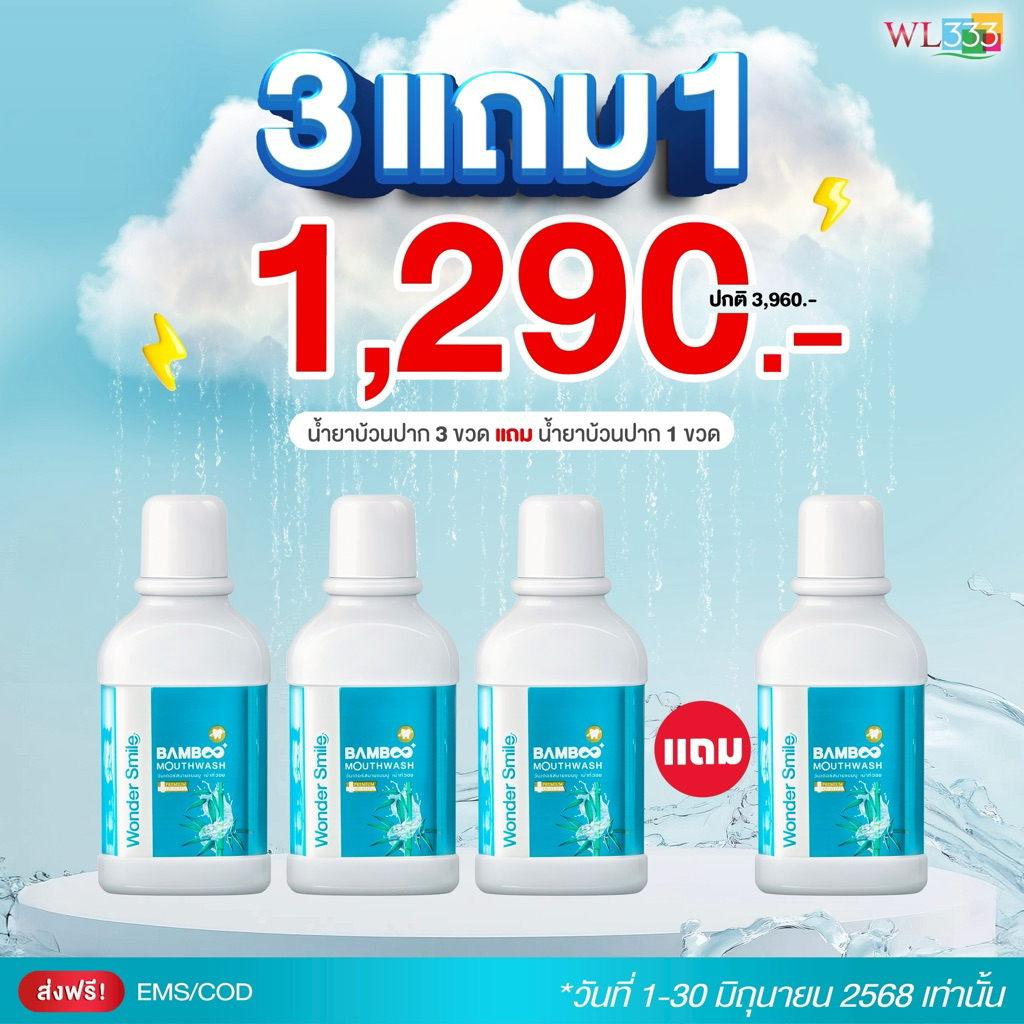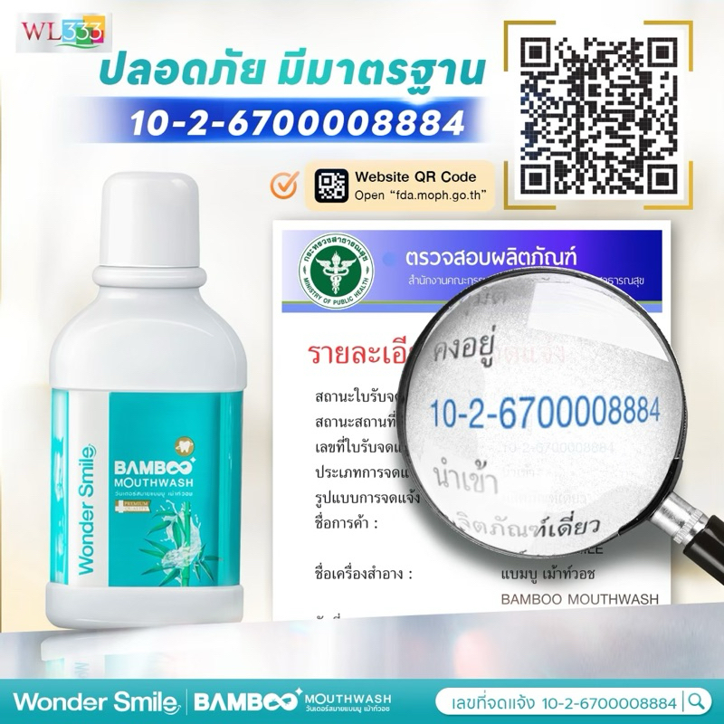 น้ำยาบ้วนปากแบมบู Wonder Smile Bamboo Mouthwash สกัดจากธรรมชาติ ไม่แสบปาก