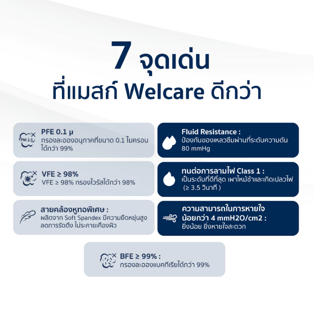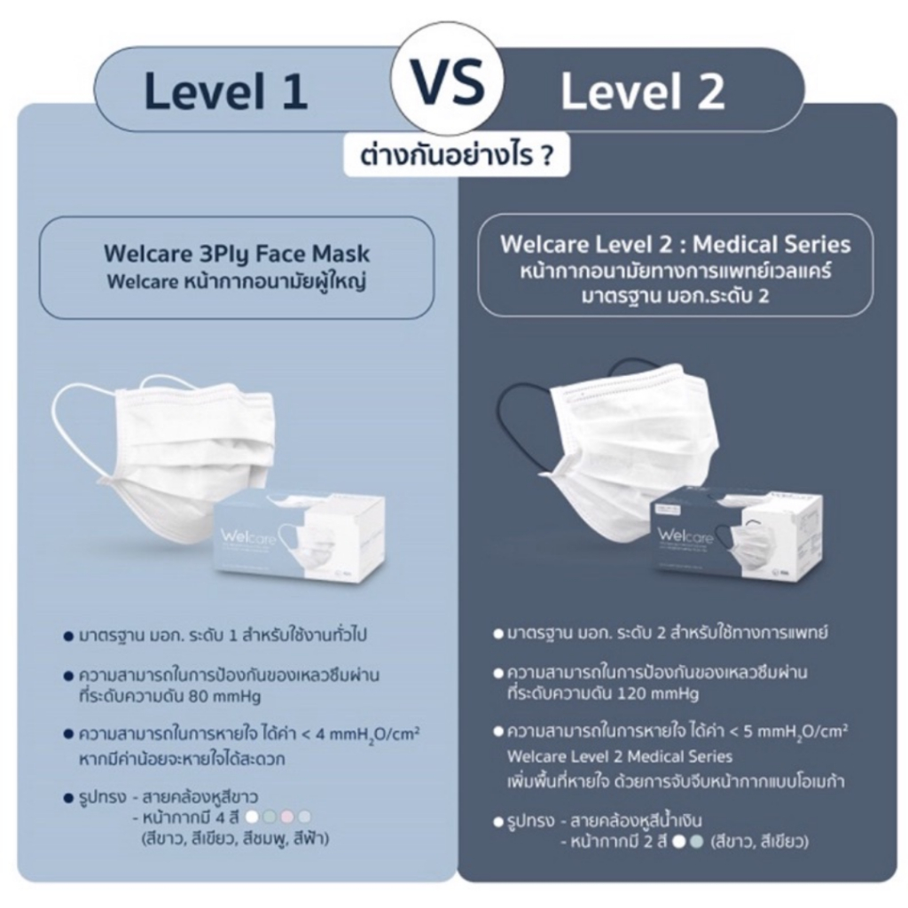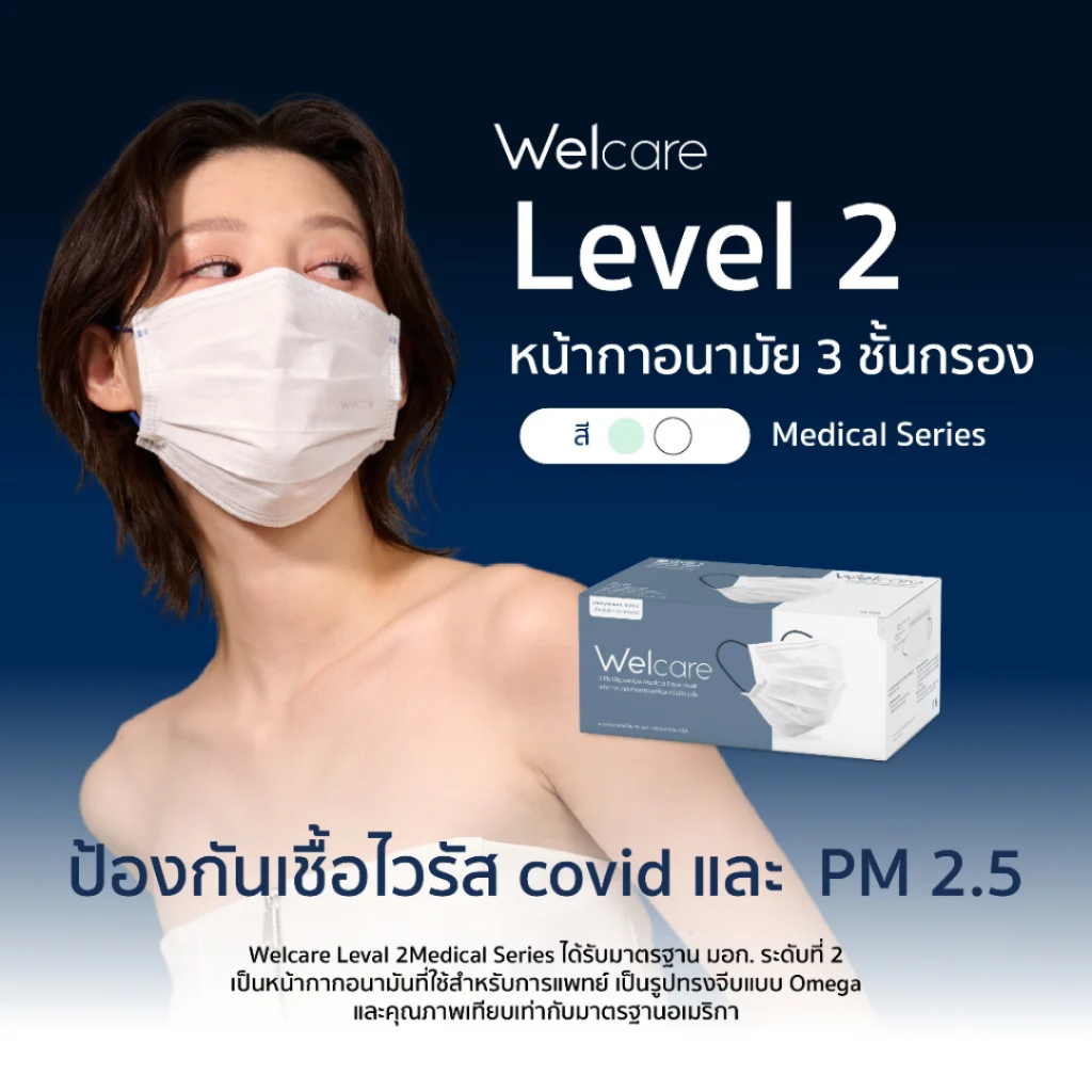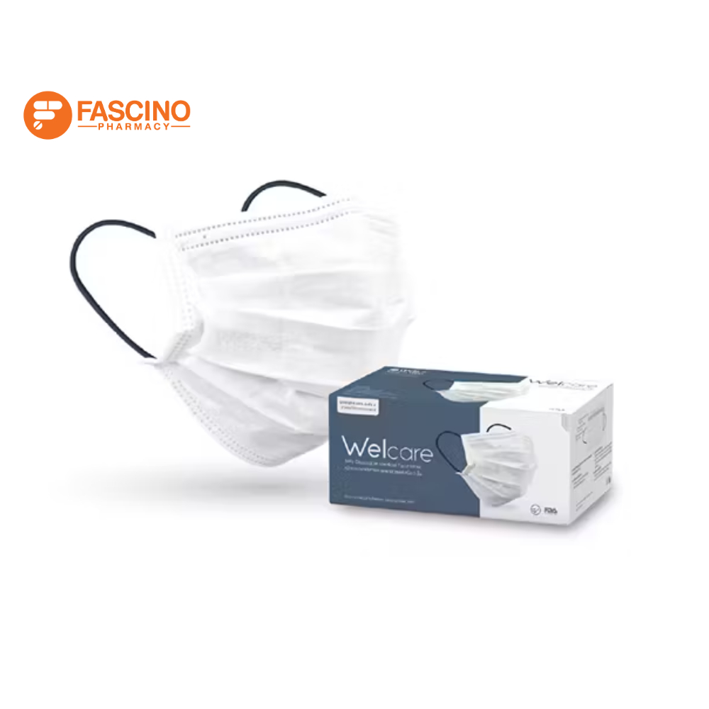 Welcare หน้ากากอนามัยเวลแคร์ หนา 3 ชั้น มาตราฐาน มอก. สีขาว 1 กล่อง จำนวน 50 ชิ้น