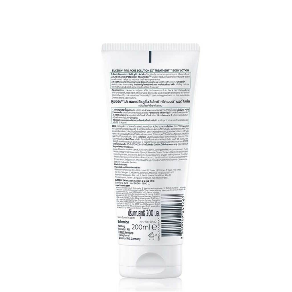 EUCERIN Pro Acne Solution 3x Treatment Body Lotion 200ml. ยูเซอริน โปรแอคเน่ โซลูชั่น ทรีทเมนท์ บอดี้ โลชั่น บำรุงผิวกาย