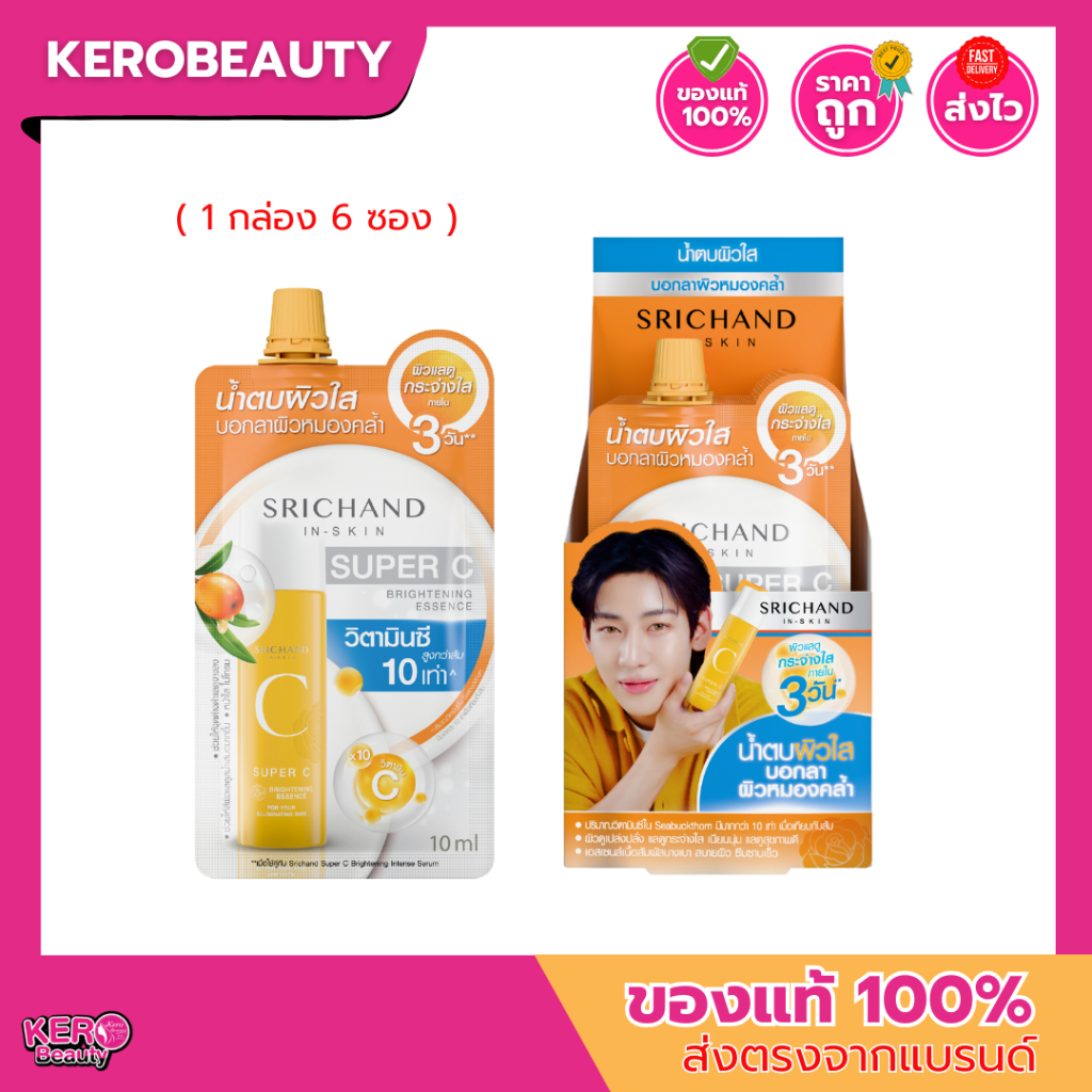 [กล่อง 6 ซอง] ศรีจันทร์ ซุปเปอร์ ซี ไบร์ทเทนนิ่ง เอสเซนส์ Super C Brightening Essence 10ml. (กล่องแบมแบม) #น้ำตบวิตซี