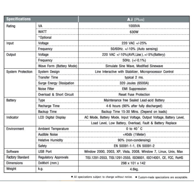 ZIRCON AI-Plus 1000VA/630W Eco Design 12V9Ah เครื่องสำรองไฟ รับประกัน 2ปี By Vnix Group