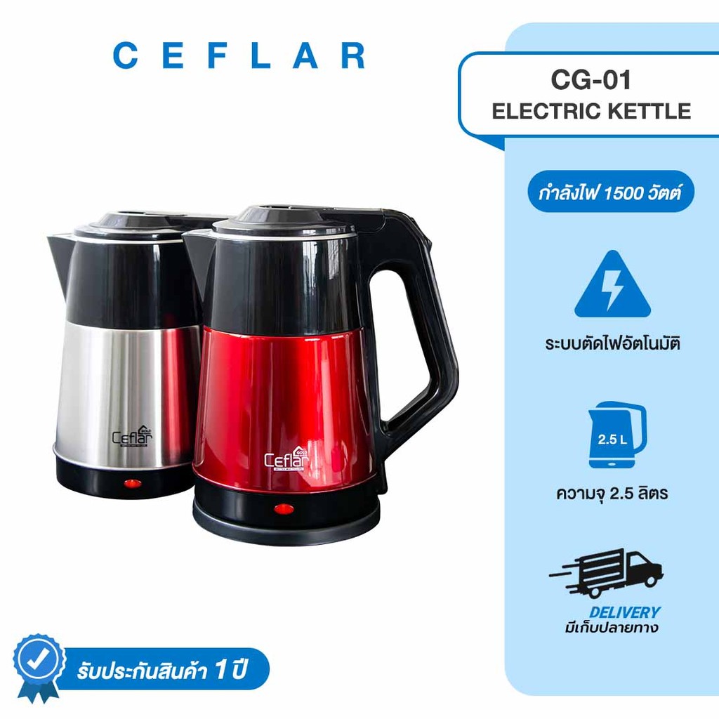 CEFLAR กาต้มน้ำไฟฟ้า 2.5L CG-01 สแตนเลสแท้ ร้อนเร็ว ตัดไฟอัตโนมัติ ประหยัดไฟ ใช้งานง่าย