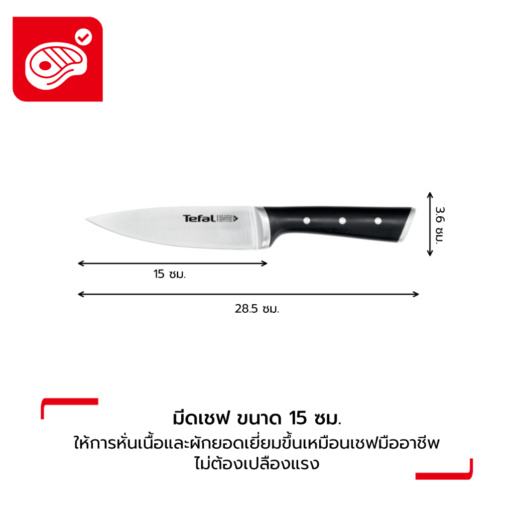 [สินค้าใหม่] Tefal มีดสแตนเลสทำอาหารรุ่น Ice Force พรีเมี่ยมเยอรมันสแตนเลสสตีล คมนานด้วยกระบวนการแช่แข็ง รับประกัน 10 ปี