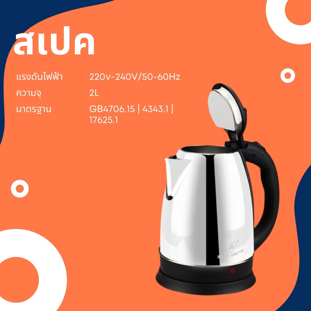 [หนาเป็นพิเศษ] กาน้ำร้อน 2ลิตร Canel&Co kettle กาต้มน้ำไฟฟ้า สแตนเลส 1500W 5นาที ตัดไฟอัตโนมัติ สินค้ าคุณภาพดี กาต้มน้ำ