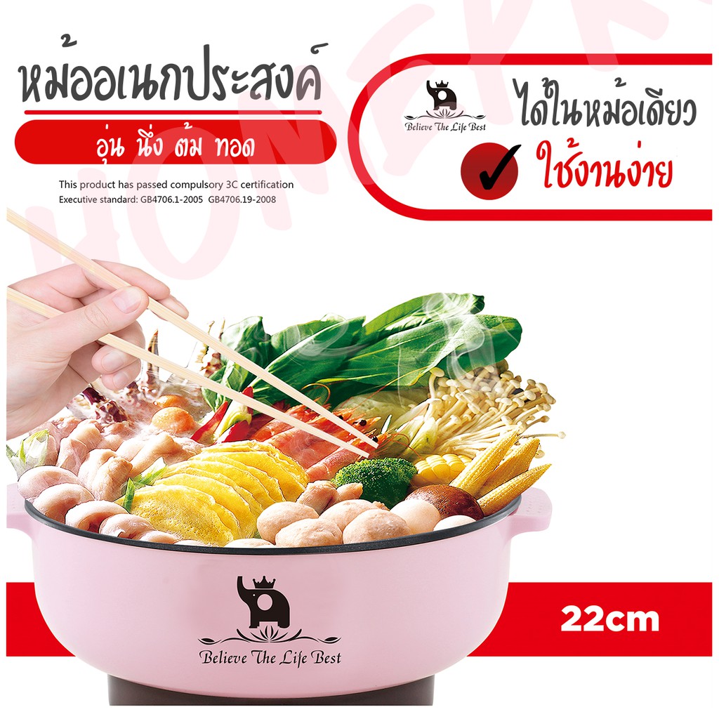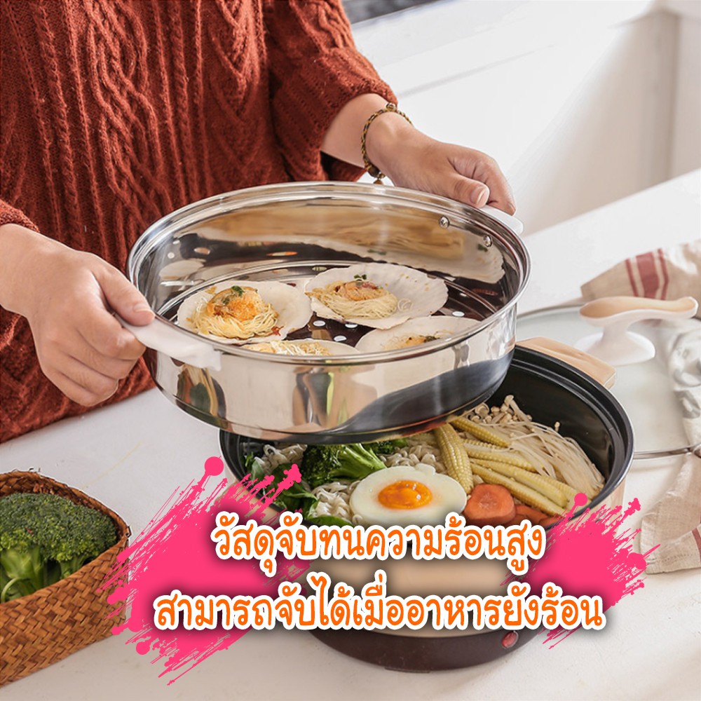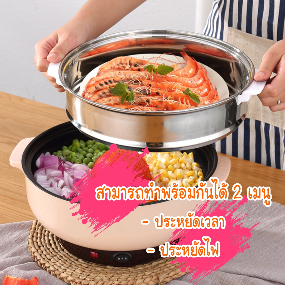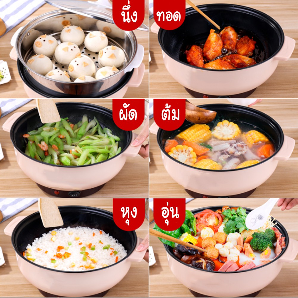 [ รับประกัน 1 ปี ] หม้อกระทะไฟฟ้าอเนกประสงค์ ความจุ 2 ลิตร หุง ทอด ผัด อุ่น ตุ๋น ต้ม นึ่ง