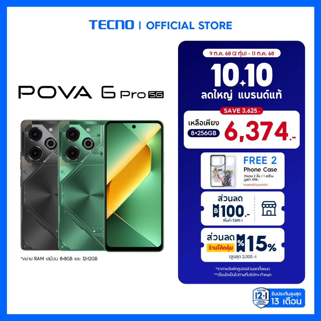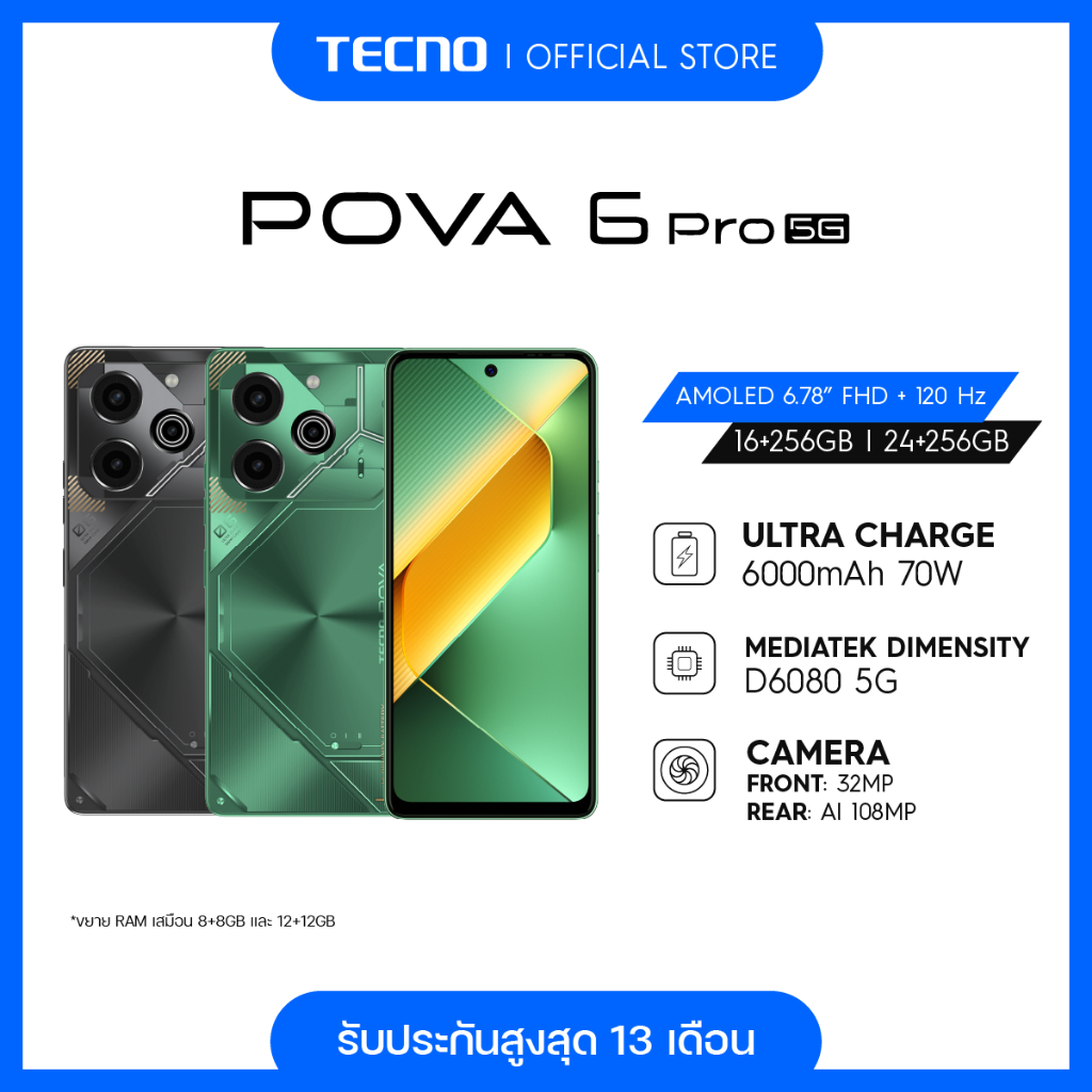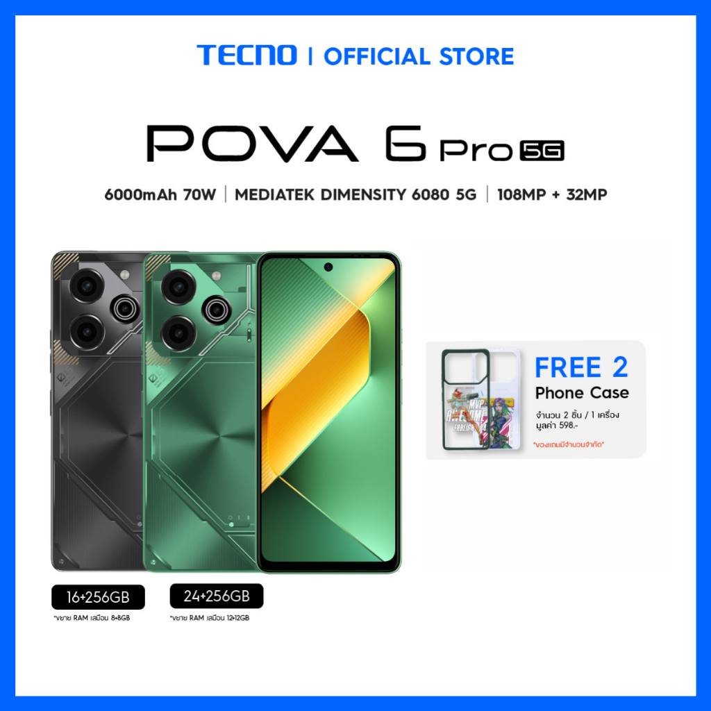 TECNO Pova 6 Pro 5G (12+256/8+256) 108MP| 6000mAh |70W Fast charge | หน้าจอ AMOLED 120HZ