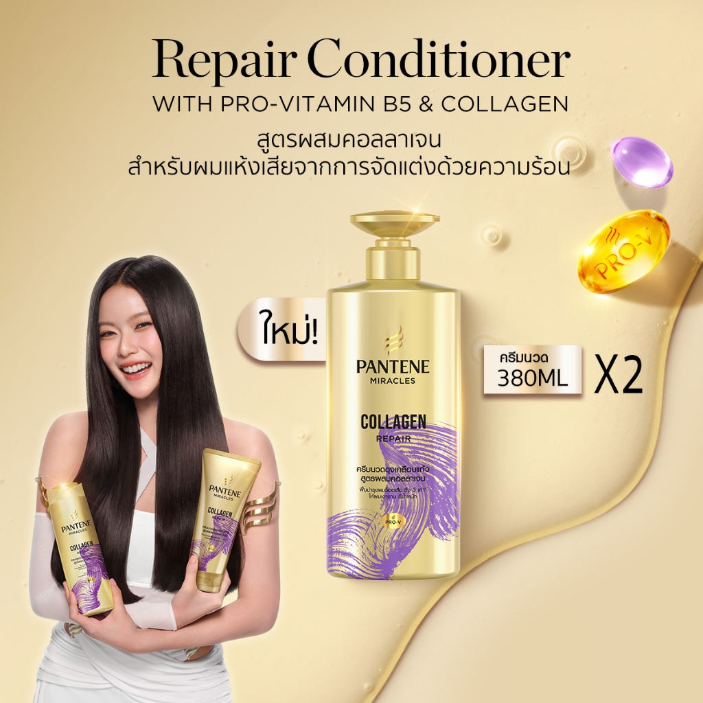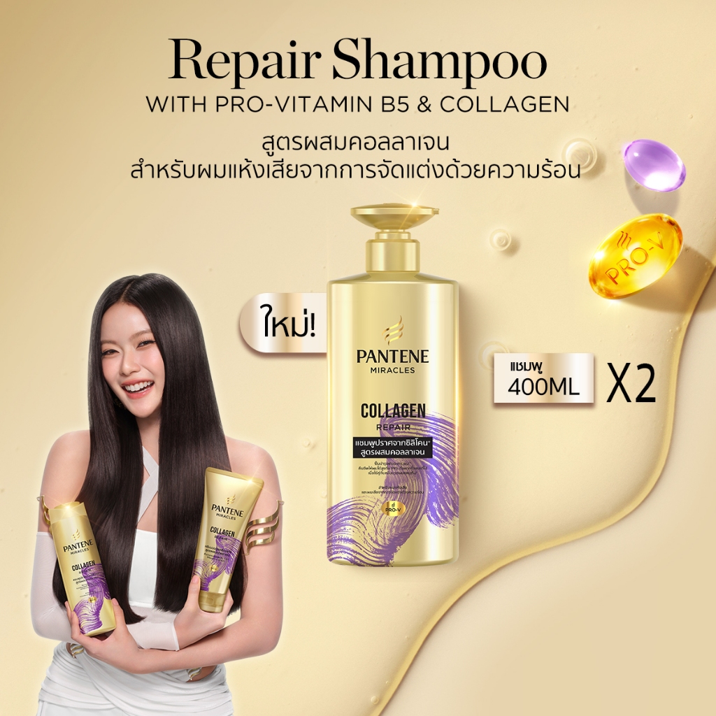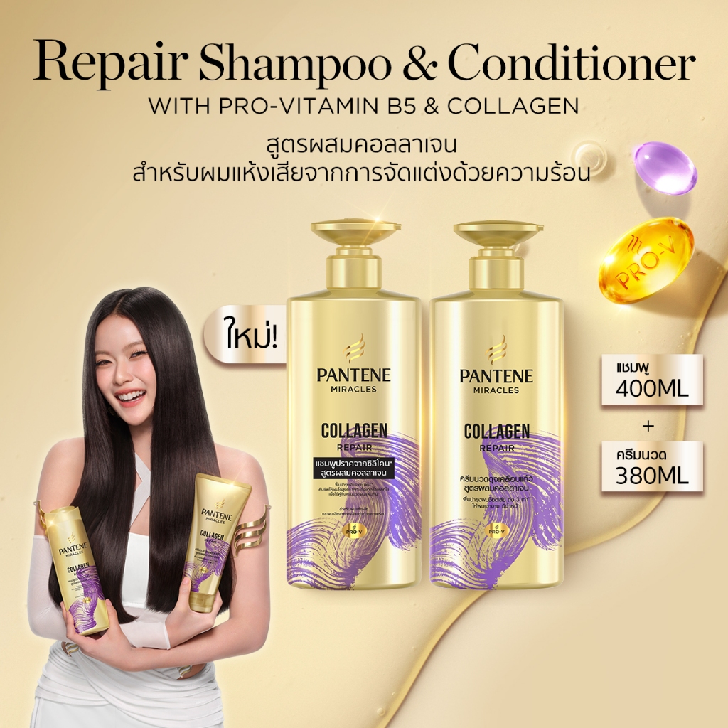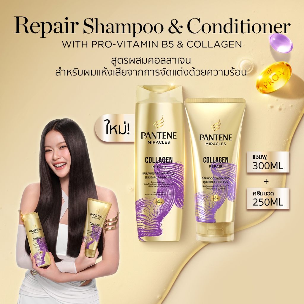 [แพ็คคู่สุดคุ้ม] Pantene แพนทีน มิราเคิล แชมพู&ครีมนวด สูตรคอลลาเจน Pantene Miracle Shampoo&Conditioner Collagen บำรุงผม