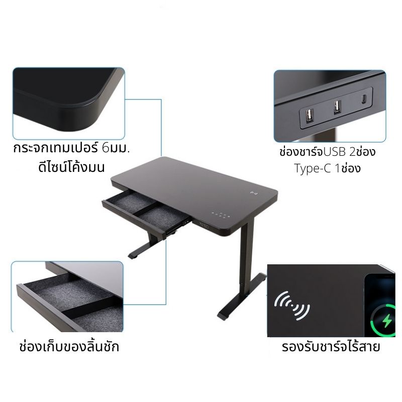 [รับประกัน5ปี] REM13 โต๊ะปรับระดับไฟฟ้า SMART DESK รุ่นPremium ระยะปรับ60-125ซม. โต๊ะขนาด120x60ซม.