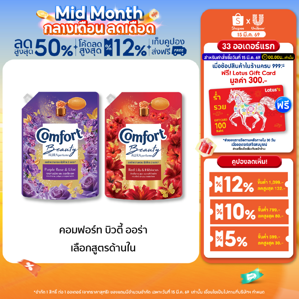 Comfort Beauty Aura (1+1) 1000 ml x1 & x3 คอมฟอร์ท ออร่า บิวตี้ น้ำยาปรับผ้านุ่มหอมฟุ้ง (1+1) 1000 ml x1 & x3