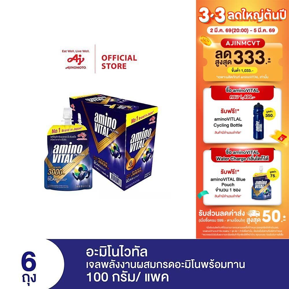 [ส่งฟรี] aminoVITAL Energy gel อะมิโนไวทัล เจลพลังงานผสมกรดอะมิโนพร้อมทาน 100 กรัม แพ็ก 6 ถุง