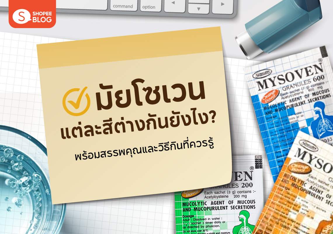 - มัยโซเวน สีสีส้ม จะเป็นรสส้ม รสชาติจะรับประทานได้ง่ายสำหรับเด็กมี ตัวยาสำคัญ Acetylcysteine ความแรง 100 มิลลิกรัม เหมาะสำหรับเด็กอายุมากกว่า 6 ปี