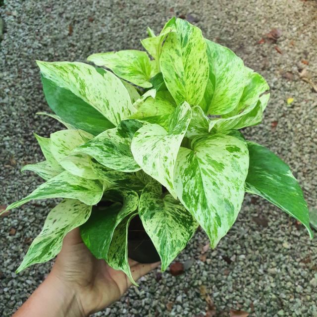 พลูราชินีหินอ่อน หรือ พลูด่างเป็นไม้เถาเลื้อย ลำต้นอวบน้ำ ใบเป็นรูปหัวใจมีลวดลายด่างเขียว เขียวอ่อน ขาว ครีม ซึ่งจะด่างมากหรือด่างน้อยนั้นก็ขึ้นอยู่กับลักษณะสายพันธุ์ ซึ่งด้วยความที่หาไม่ยาก เติบโตได้เร็ว พลูราชินีหินอ่อนจึงเป็นไม้ด่างที่น่าสนใจสำหรับผู้ที่มีงบประมาณไม่มาก แต่ก็สามารถครอบครองไม้ประดับที่สวยแปลกตานำมาประดับห้องให้ดูชิค ๆ ได้เหมือนกัน