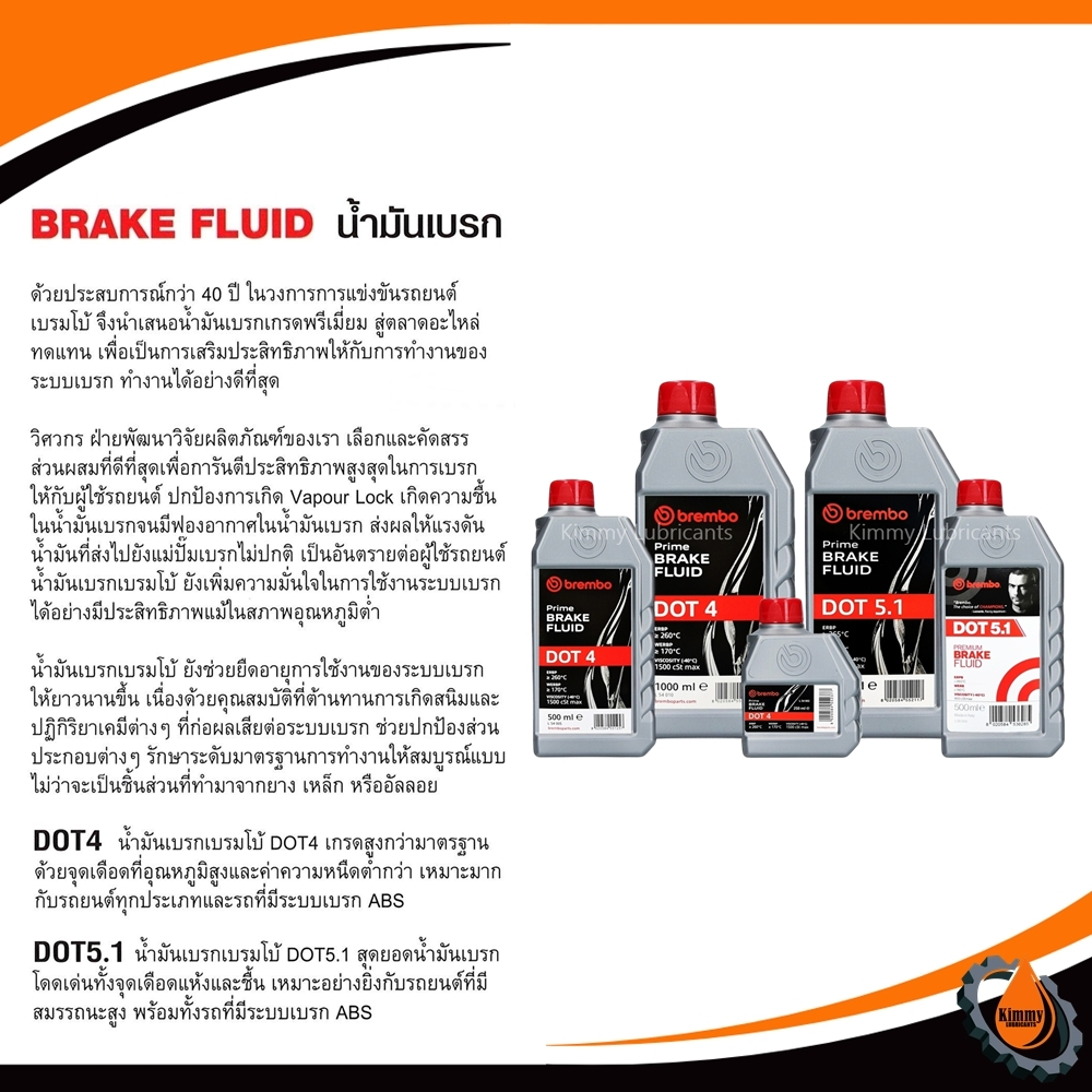 น้ำมันเบรค BREMBO DOT4 และ DOT5.1 ขนาด 250ml , 500ml และ 1,000ml