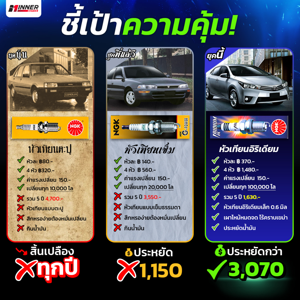 หัวเทียนแท้💯 NGK IRIDIUM IX by INNER MOTIVE [Mirage / Ciaz / Camry Hybrid / Fiesta / Swift / CivicFC / Vigo 2.7 /NISSAN]