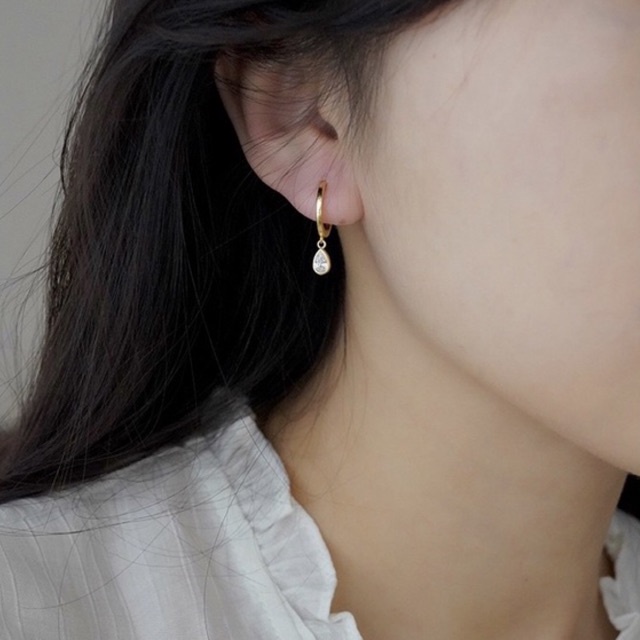 earika.earrings - raindrops keep fallin' collection ต่างหูทรงลายหยดน้ำก้านเงินแท้ชุบทองคำขาว/ทอง สำหรับผิวแพ้ง่าย