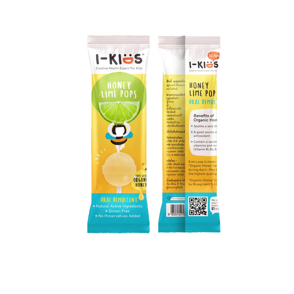i-KIDS HONEY LIME POPS ลูกอมน้ำผึ้งรสมะนาว 1 ชิ้น