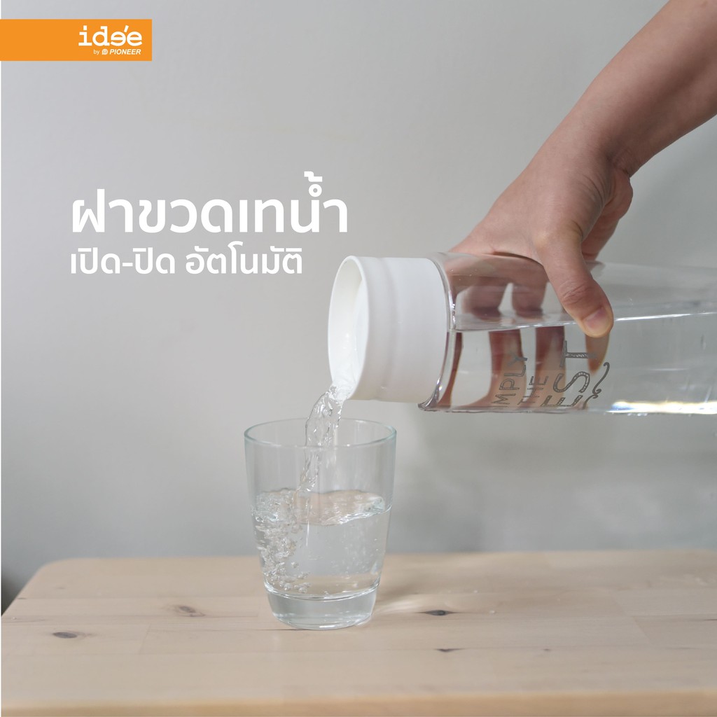 ide'e ขวดใส่น้ำดื่มทรงสูง ขวดน้ำพลาสติก ฝาเปิด-ปิดอัตโนมัติ (รุ่น PNP3502) ความจุ 1,050 ml. ใช้งานสะดวก เทน้ำได้เลย