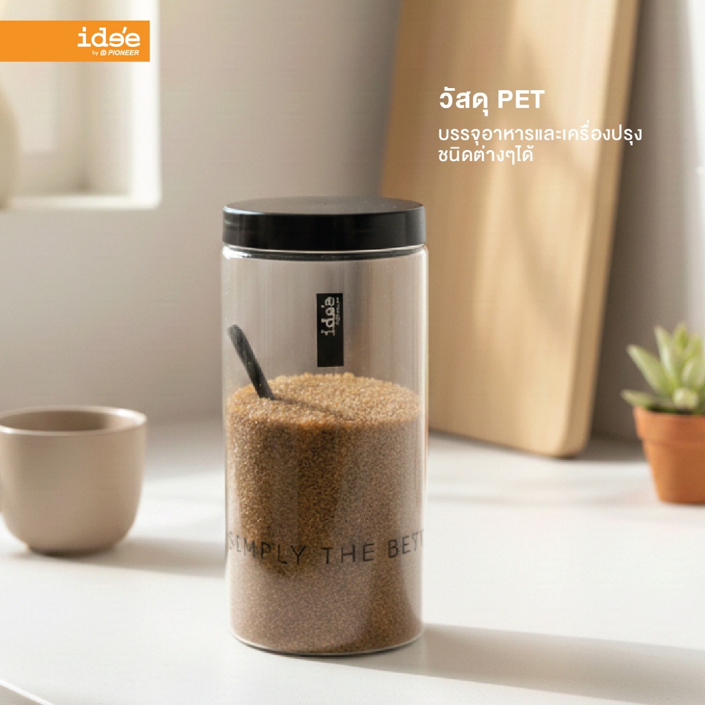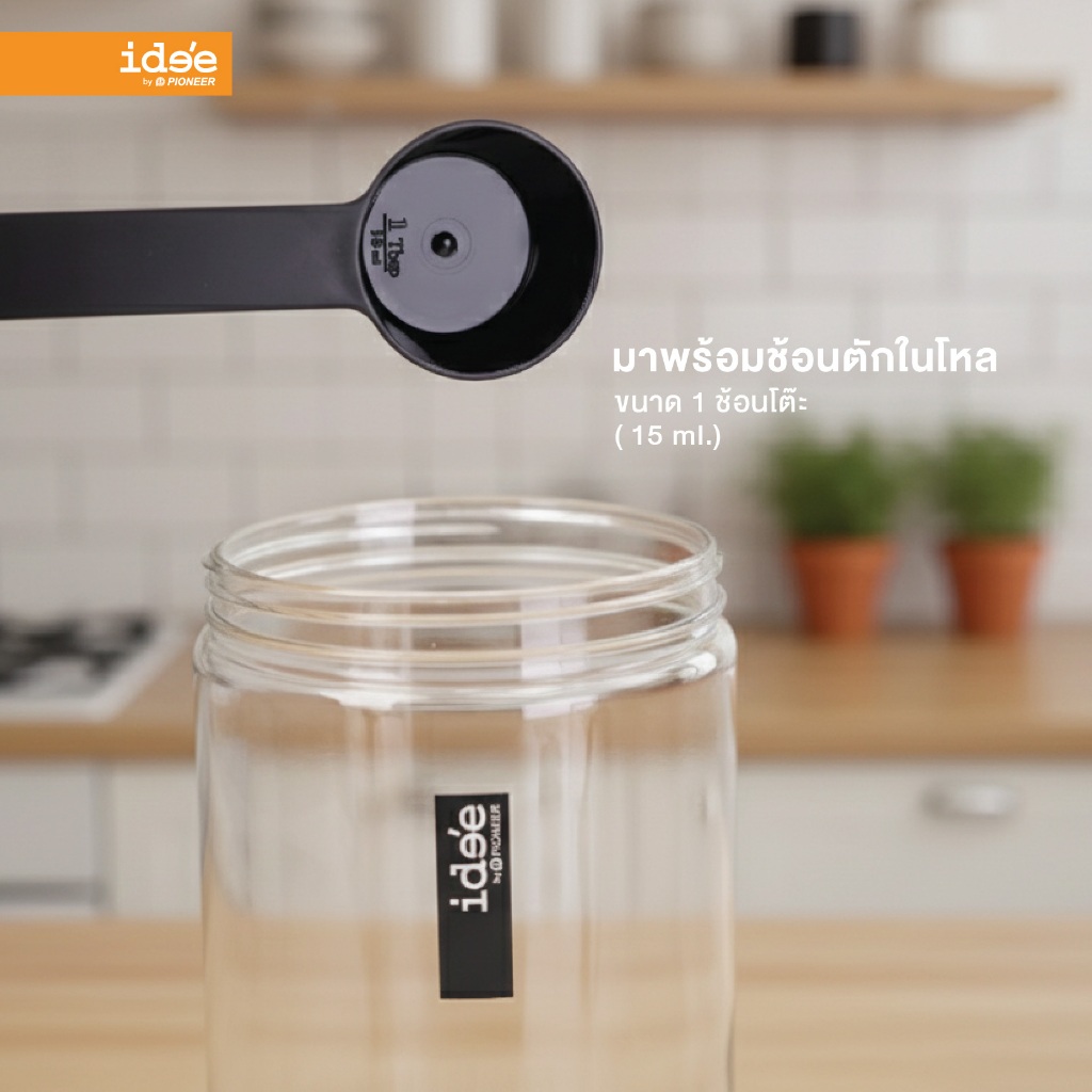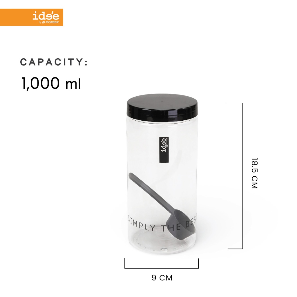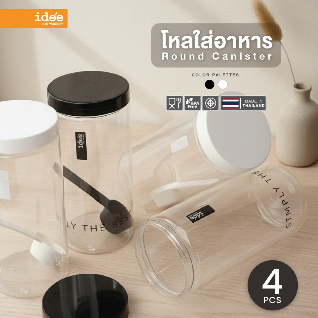 ide'e [แพค 4 ใบ] ขวดโหลพลาสติก ความจุ 1,000 ml. (PNP3602) มีช้อนตักให้ในโหล ใช้ใส่เครื่องปรุง ใส่ผงชา-กาแฟ ใช้งานสะดวก