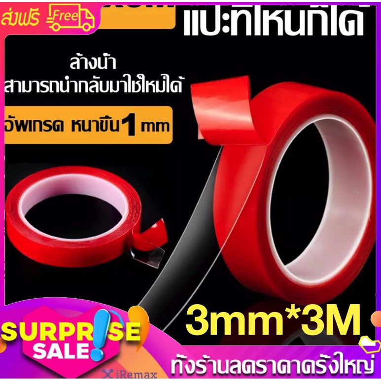 กาวสองหน้ายาว 3M แบบใส แรงยึดติดสูง เหนียวหนึบติดแน่นติดทน สองด้านรถสติกเกอร์ใสรถกาวเทปโฟมอะคริลิ สติ๊กเกอร์ แต่ง