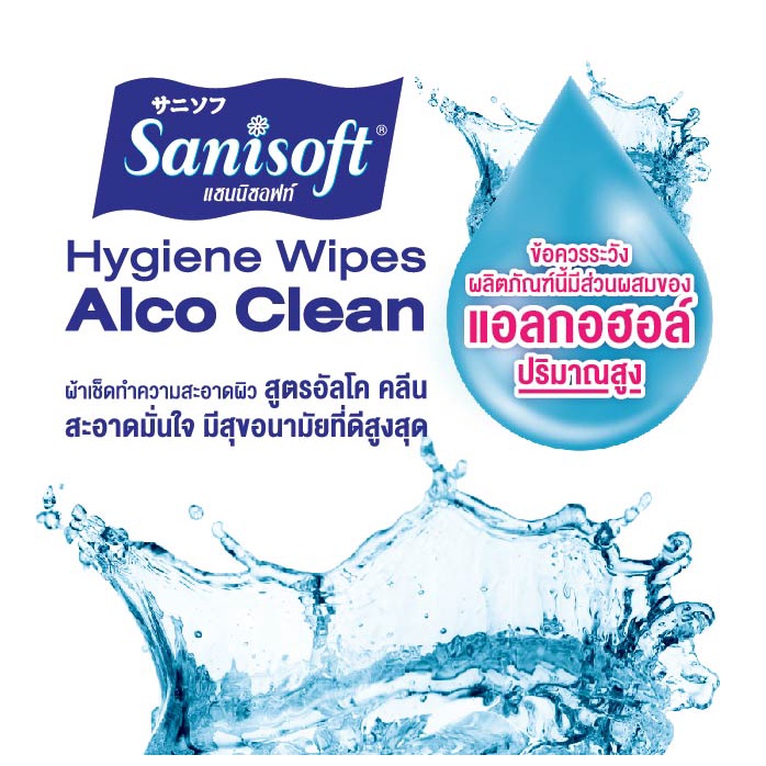 [แพ็ค X 6ห่อ] Sanisoft 70% Alcohol Hygiene Wipes AlcoClean / ผ ้าเช็ดสูตรแอลกอฮอล์ 70% 20แผ่น/ห่อ