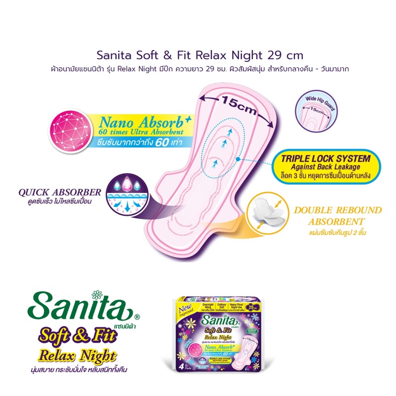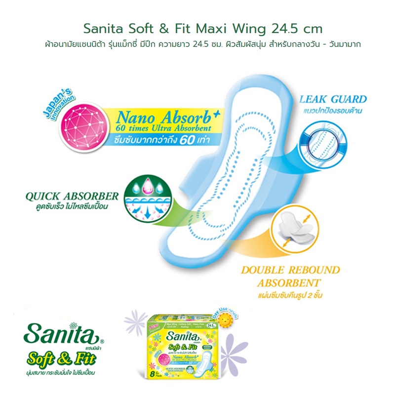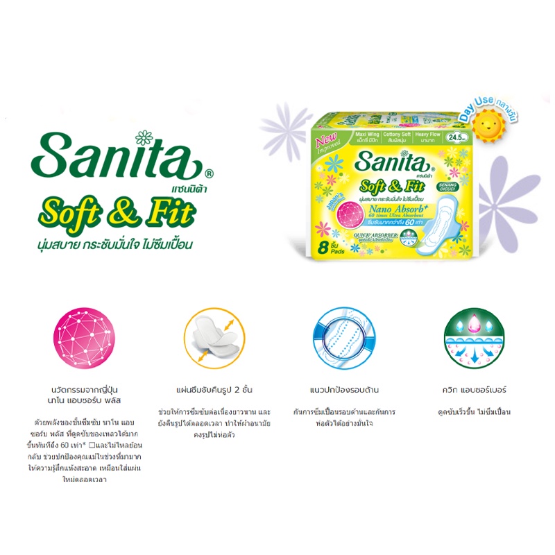 [Best Seller สินค้าขายดี] Sanita / แซนนิต้า ผ้าอนามั ย (แบบกลางวัน / กลางคืน / แผ่นอนามัยใช้ทุกวัน)