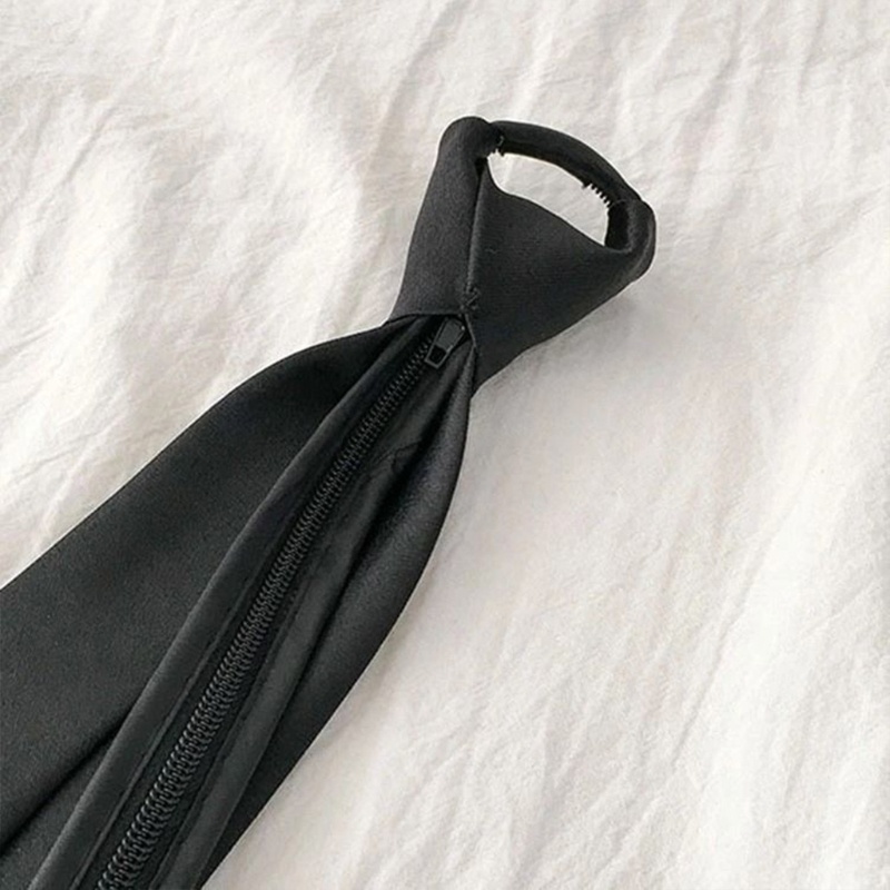San* เนคไทสกินนี่ มีซิป สีดํา ปรับได้ สไตล์เรโทร สําหรับผู้หญิง ผู้ชาย ใส่ไปงานปาร์ตี้ งานแต่งงาน