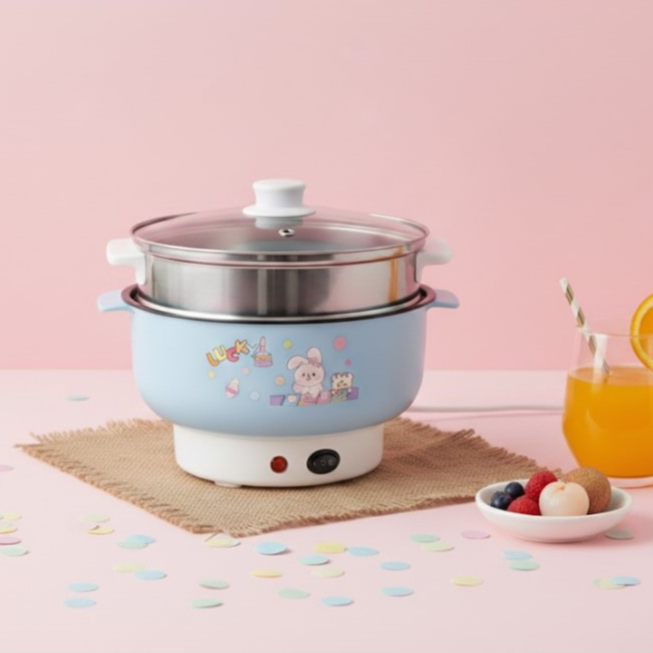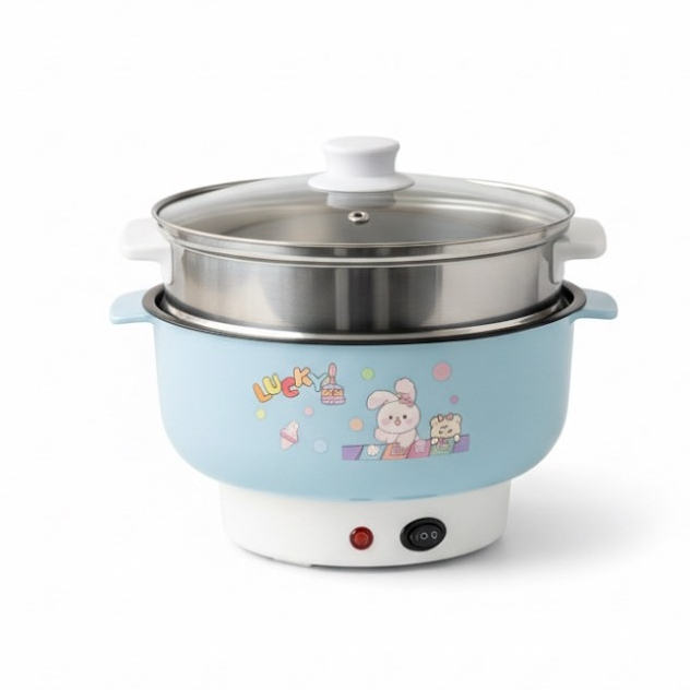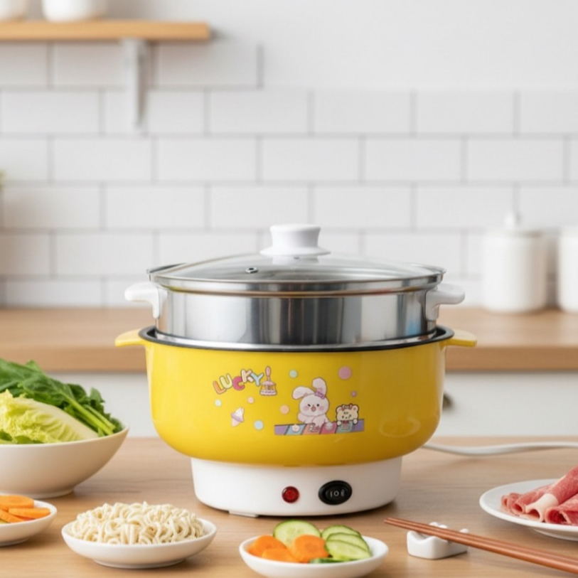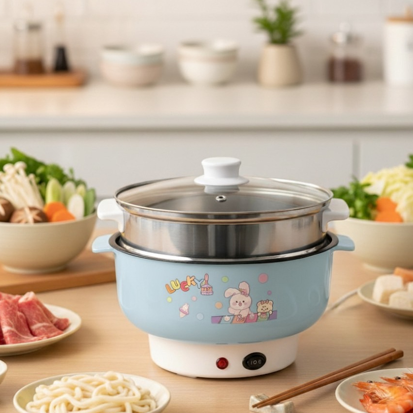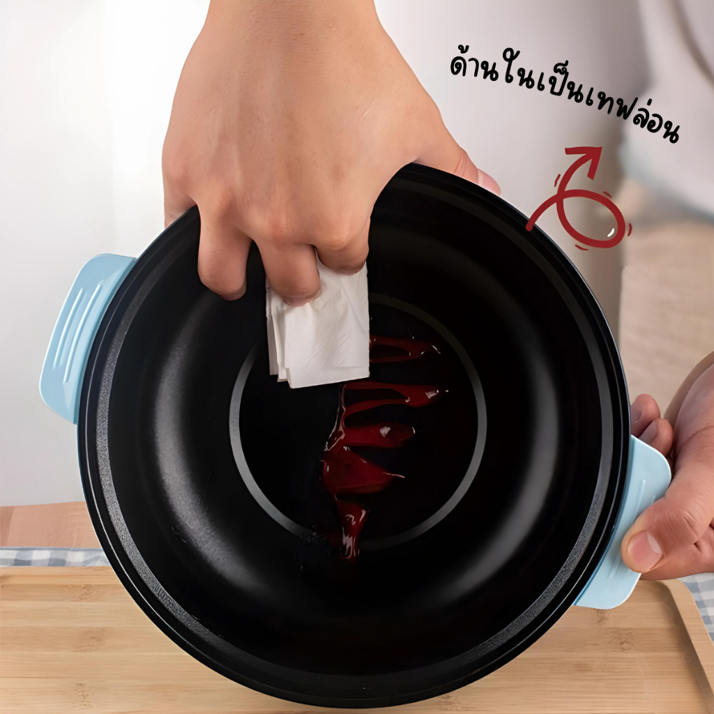 หม้อไฟฟ้าอเนกประสงค์ ทอด ผัด อุ่น ตุ๋น ต้ม นึ่ง ขนาด 22 cm แถมฟรีตะหลิวไม้