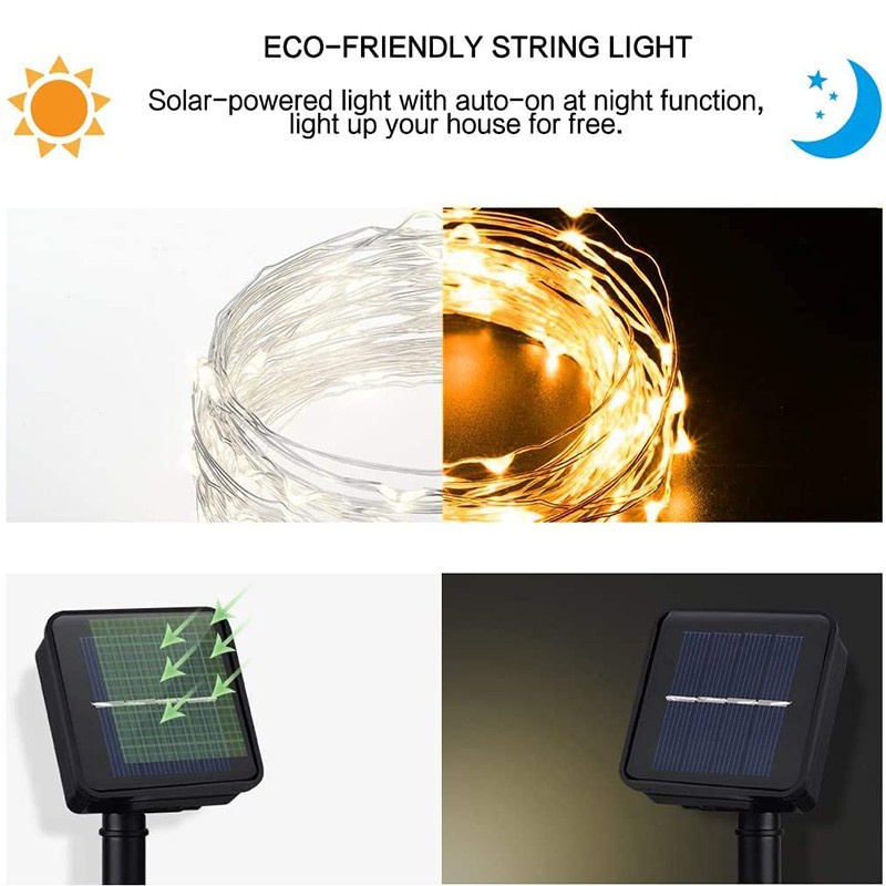 สายไฟ Led 50LED พลังงานแสงอาทิตย์กันน้ําสําหรับตกแต่งปาร์ตี้คริสต์มาส 7 เมตร