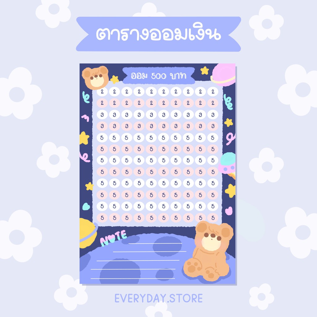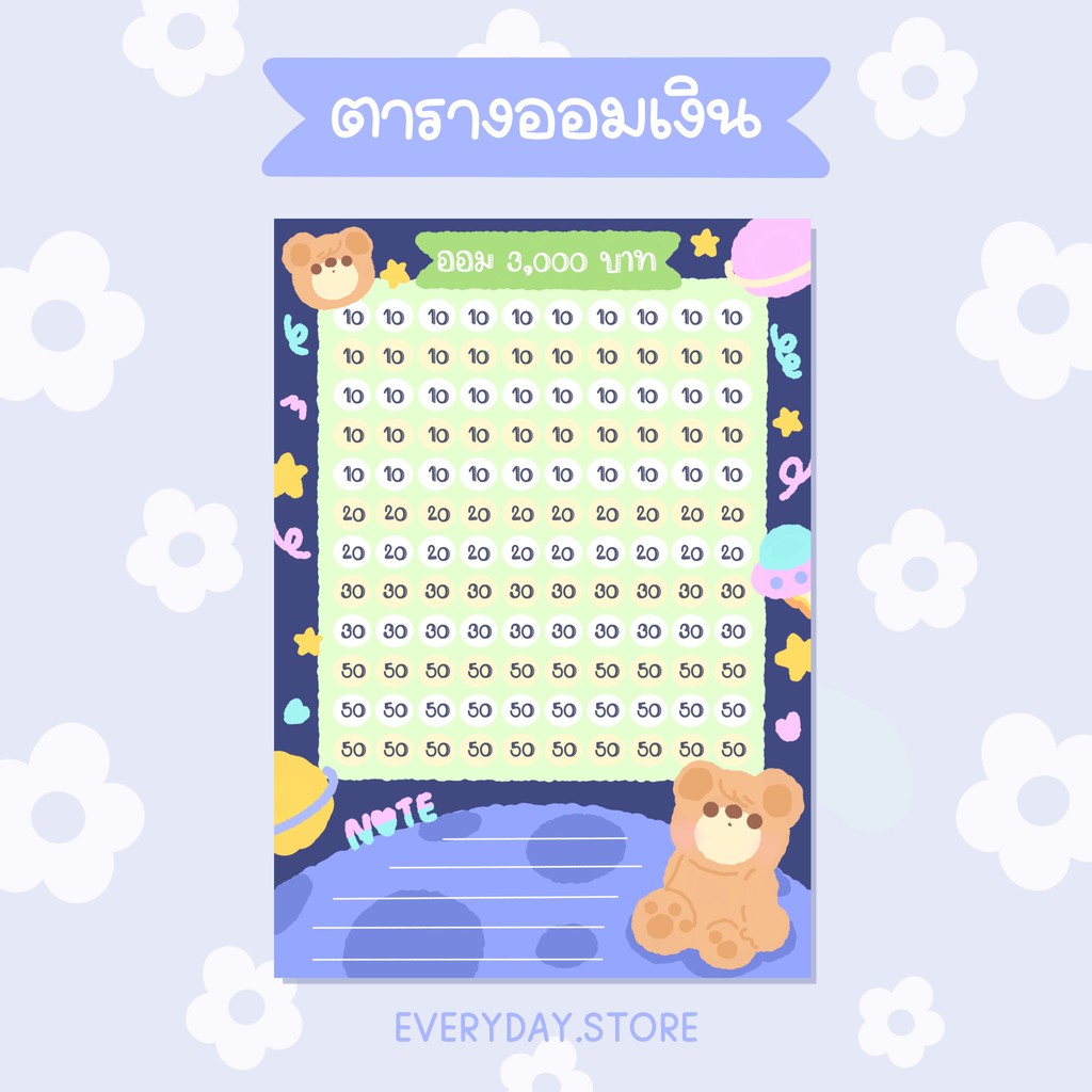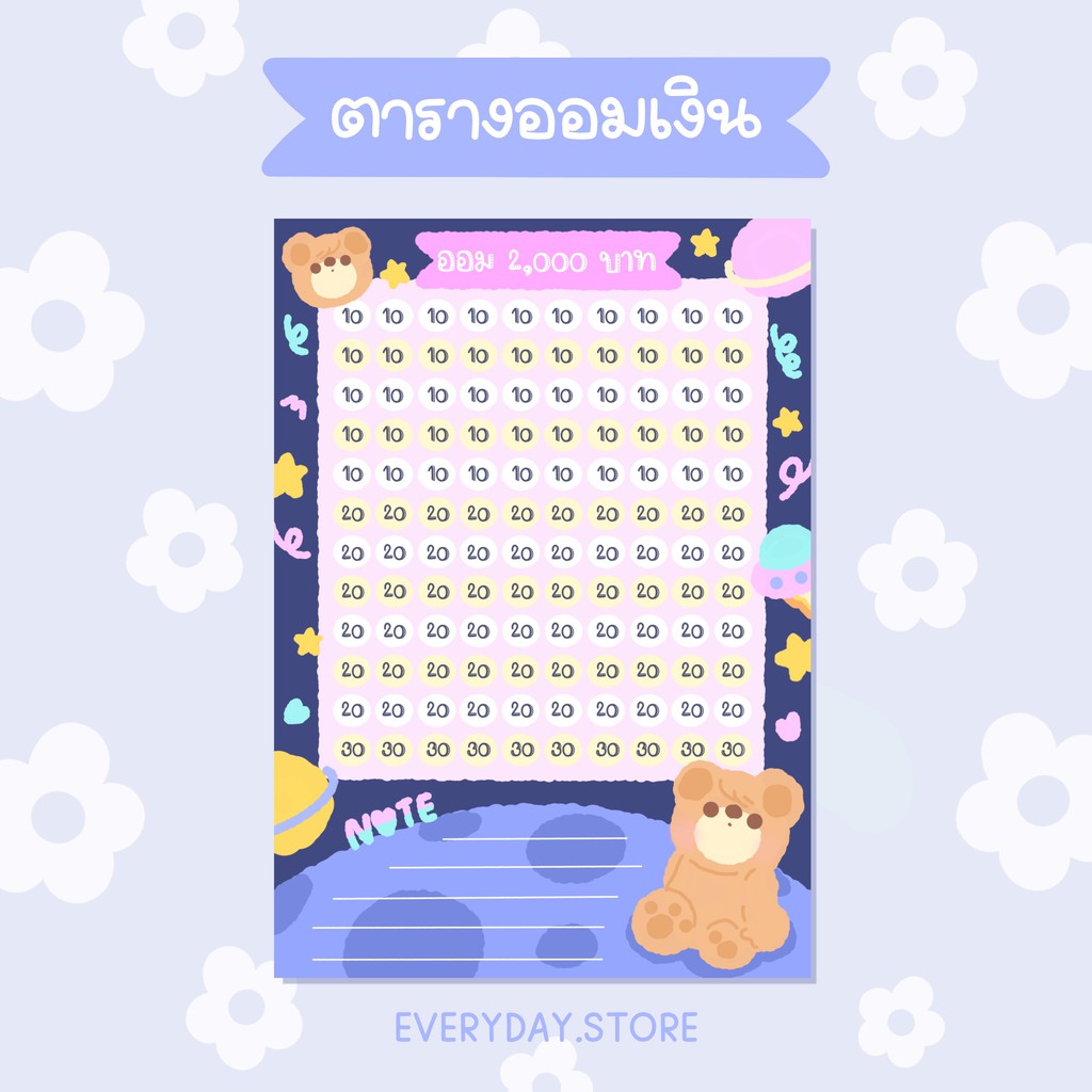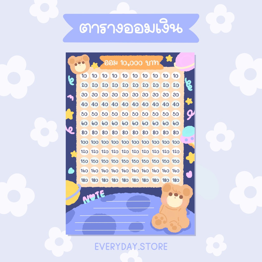 Everyday.store 💖 ตารางออมเงิน ลาย Galaxy Bear ขนาด A6